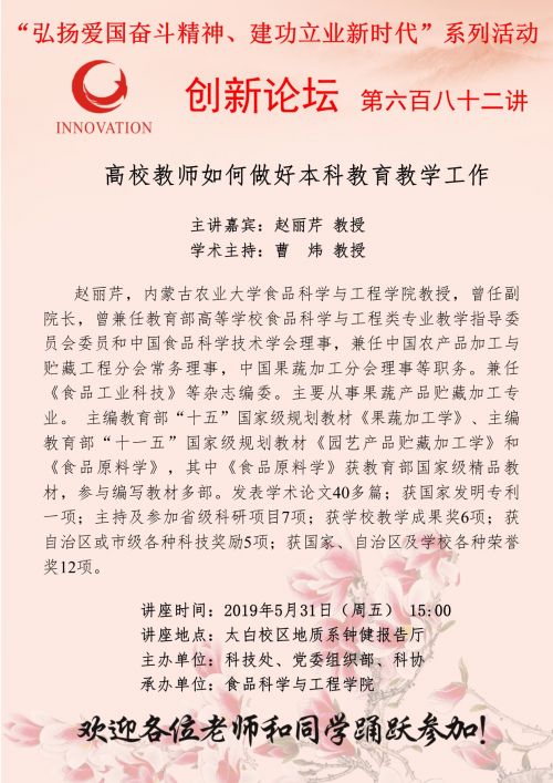 365英国上市公司官网成立于2017年,是在2002年成立的365英国上市公司官网化工学院食品工程系的基础上,汇集西北农林科技大学食品科学与工程、365英国上市公司官网食品科学与工程、生命科学等相关专业的师资力量组建而成。学院现有二级学科博士点1个,一级学科硕士点1个,二级学科硕士点1个。 学院现有专职教师45人,其中教授9人,副教授21人,讲师15人,100%的教师具有博士学位,80%的教师有海外留学经历。教师队伍中有原国务院学位委员会学科评议组专家1人,享受国务院特殊津贴专家1人,教育部新世纪人才2人,陕西省“三五”人才1人,陕西省科技创新领军人才2人和陕西青年科技奖获得者2人。学院拥有“朱蓓薇院士工作站”、“陕西省食品安全风险识别控制技术研究中心”、“陕西省营养健康食品个性制造工程实验室”、“陕西省食品安全与营养健康创新转化平台”和“陕西省蜂产品工程技术研究中心”、“陕西省天然多糖资源利用工程研究中心”等科研平台...