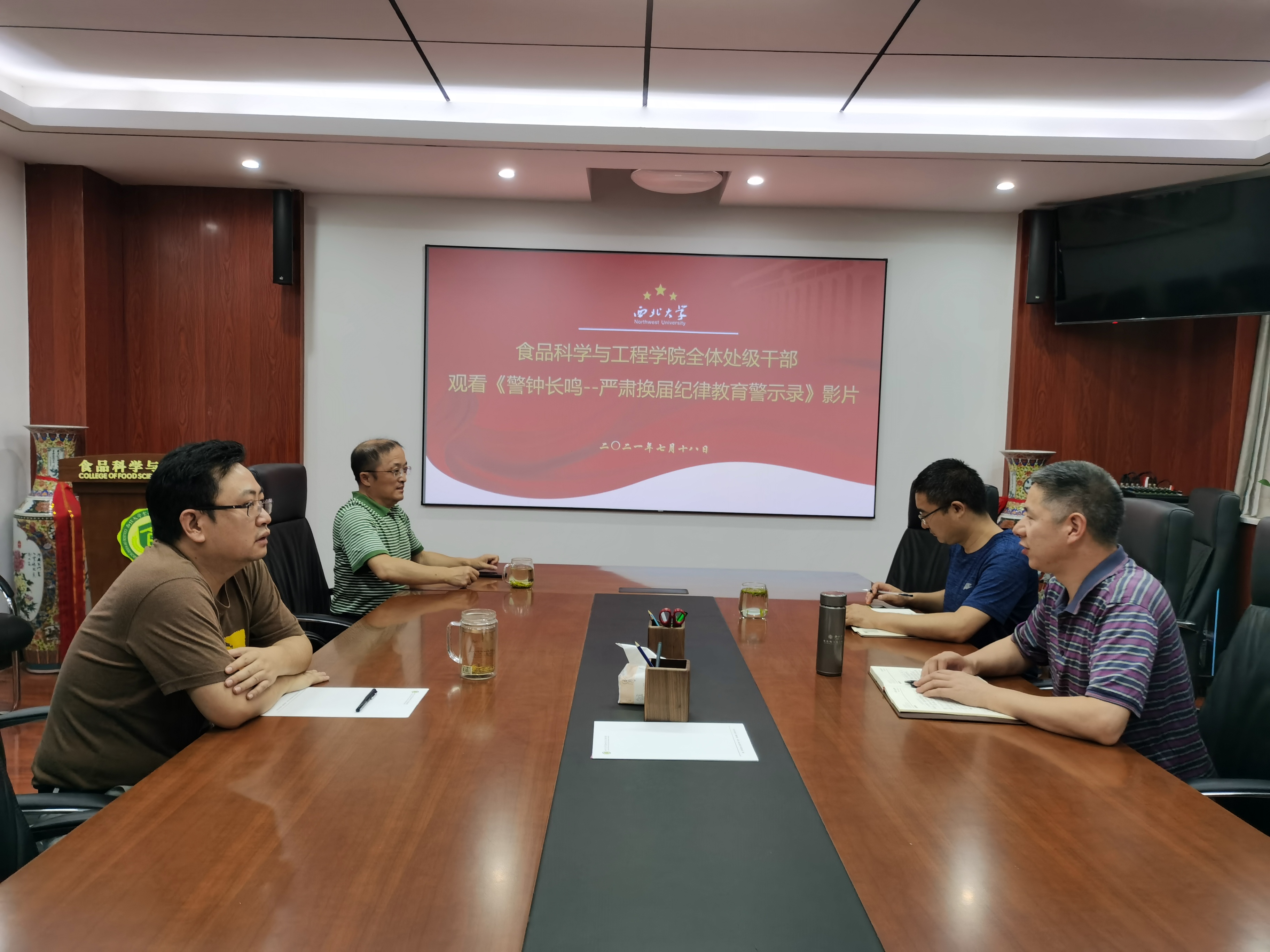 7月18日早上,我院召开党政班子警示教育专题会,集体观看《警钟长鸣—严肃换届纪律教育警示录》影片,会议由党委书记刘晓忠主持。