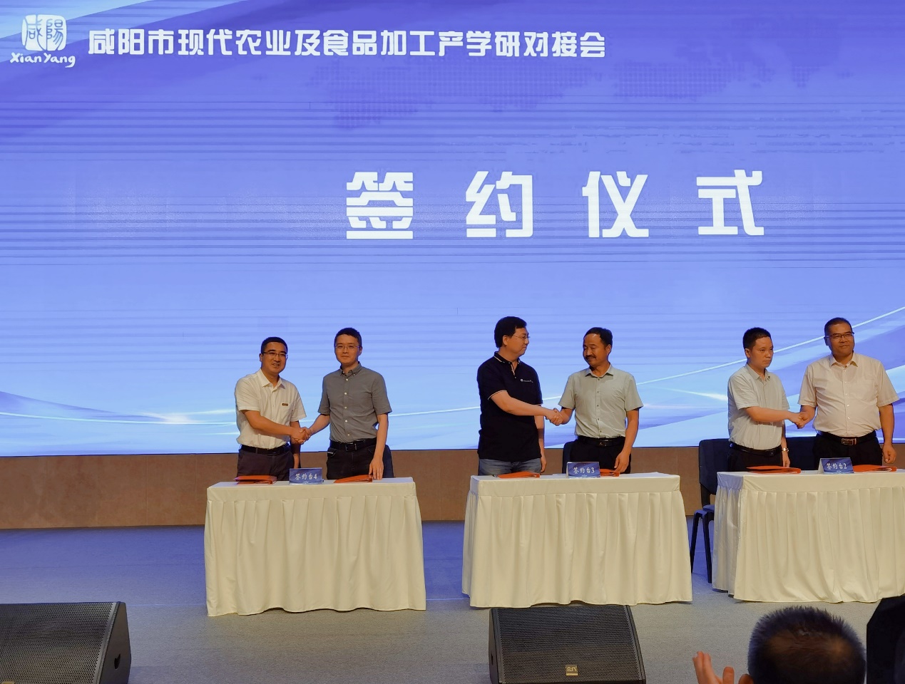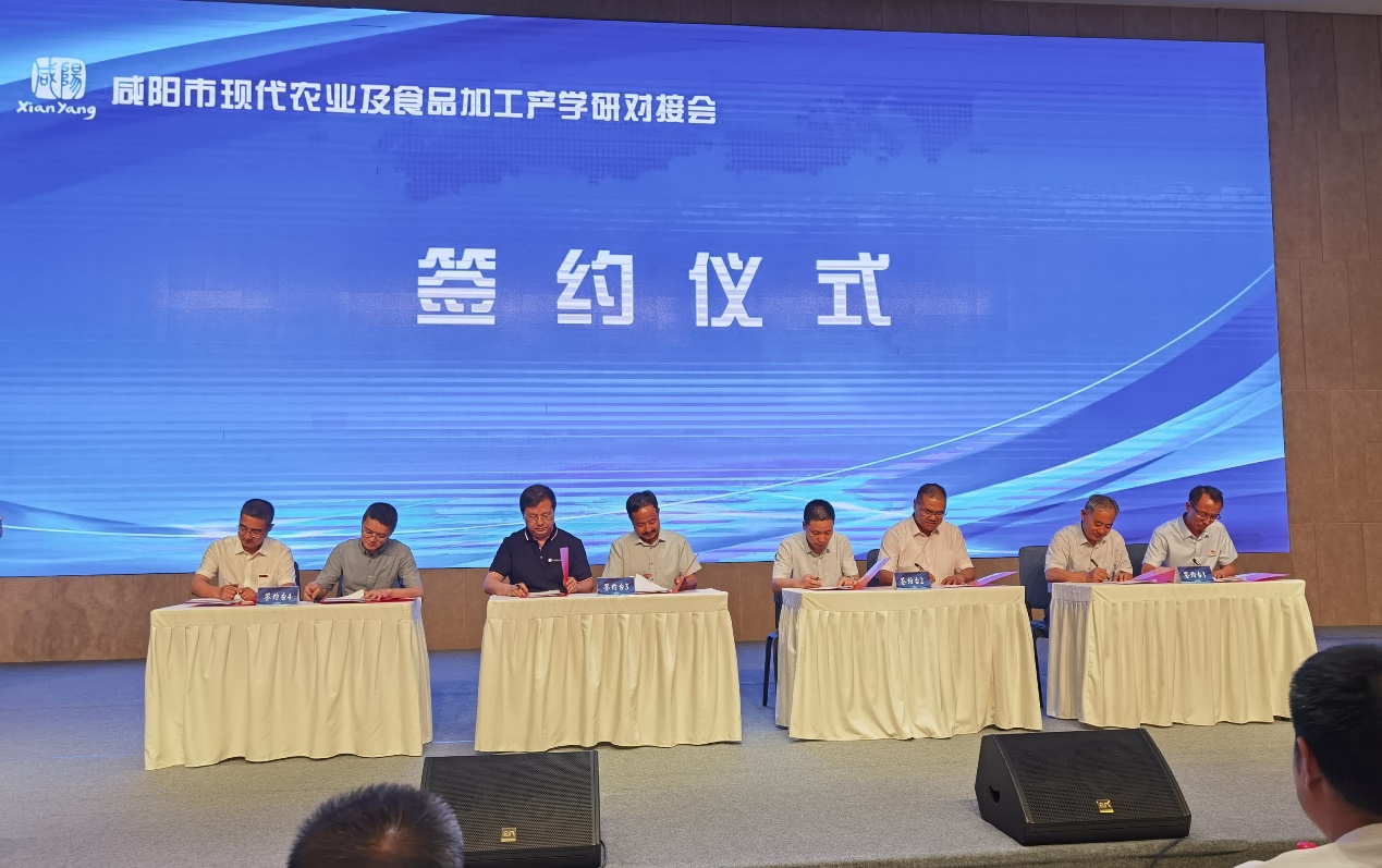 7月2日下午,由咸阳市科学技术局、咸阳市农业农村局、咸阳市乡村振兴局联合举办的“咸阳市现代农业及食品加工产学研对接会”在陕西咸阳高新区召开。365英国官网副院长赵会武,教师郭森参加此次会议,对接会分企业与高校院所签约仪式、高校及科研院所代表推介科技成果、企业技术需求发布及对接交流三部分进行。