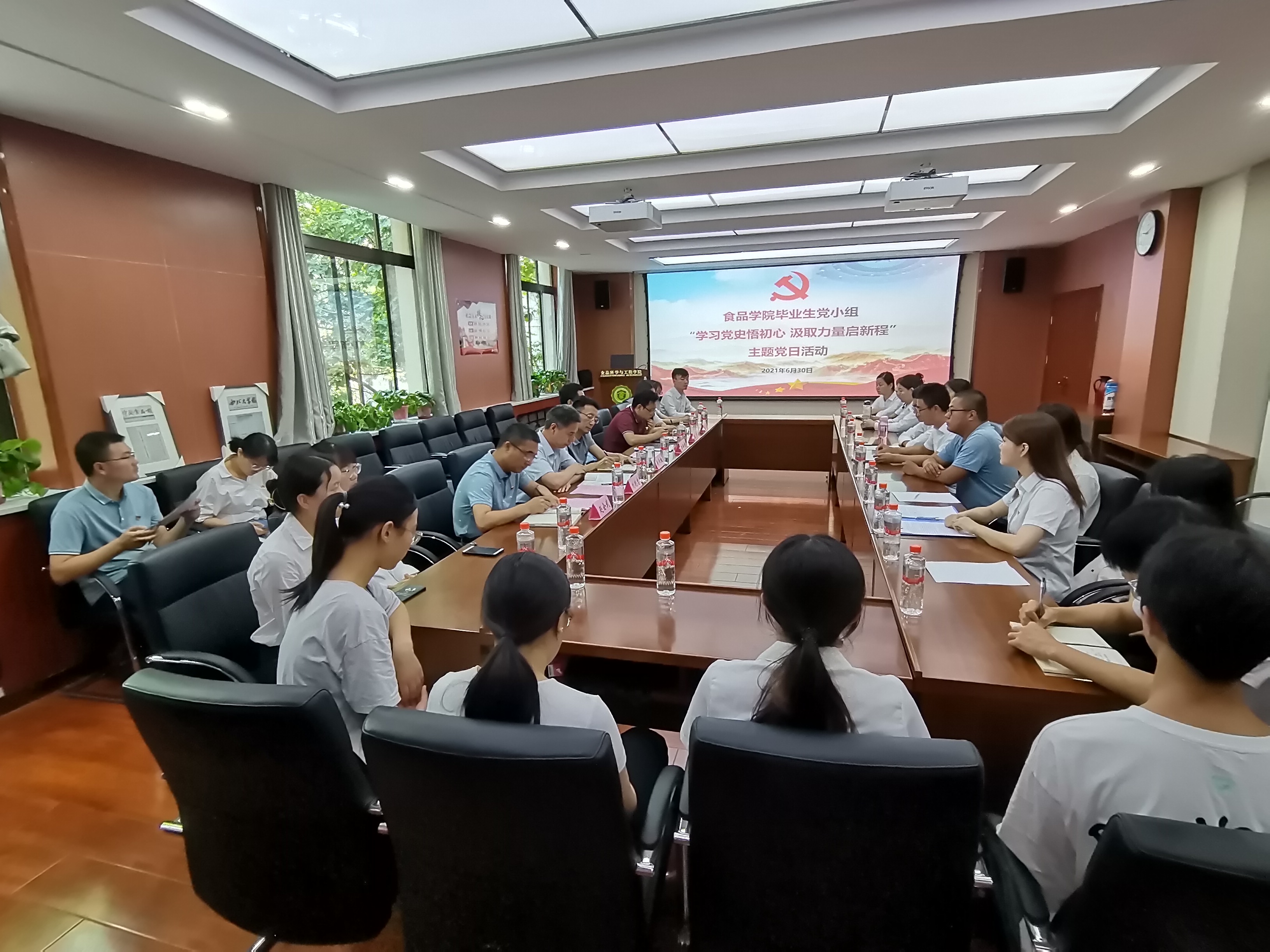 为进一步推动党史学习教育走深走实,6月30日上午,食品学院党委举行2021届毕业生党员“学习党史悟初心 汲取力量启新程”主题党日活动,开展毕业生座谈会,观看爱国红色电影《悬崖之上》。校党委副书记赵作纽,食品学院党政负责人,2021毕业生班主任,毕业生党员和全体毕业生参加活动。主题党日活动由毕业生党员杨宇主持。