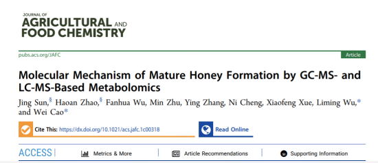 近日,365英国上市公司官网曹炜教授团队在食品科学领域国际著名学术期刊《Journal of Agricultural and Food Chemistry》发表了题为《Molecular Mechanism of Mature Honey Formation by GC-MS- and LC-MS-Based Metabolomics》的学术论文,该研究通过代谢组学方法揭示了不同酿造时间的蜂蜜差异性代谢物的变化规律,实现了成熟蜂蜜和未成熟蜂蜜的精准“诊断”。