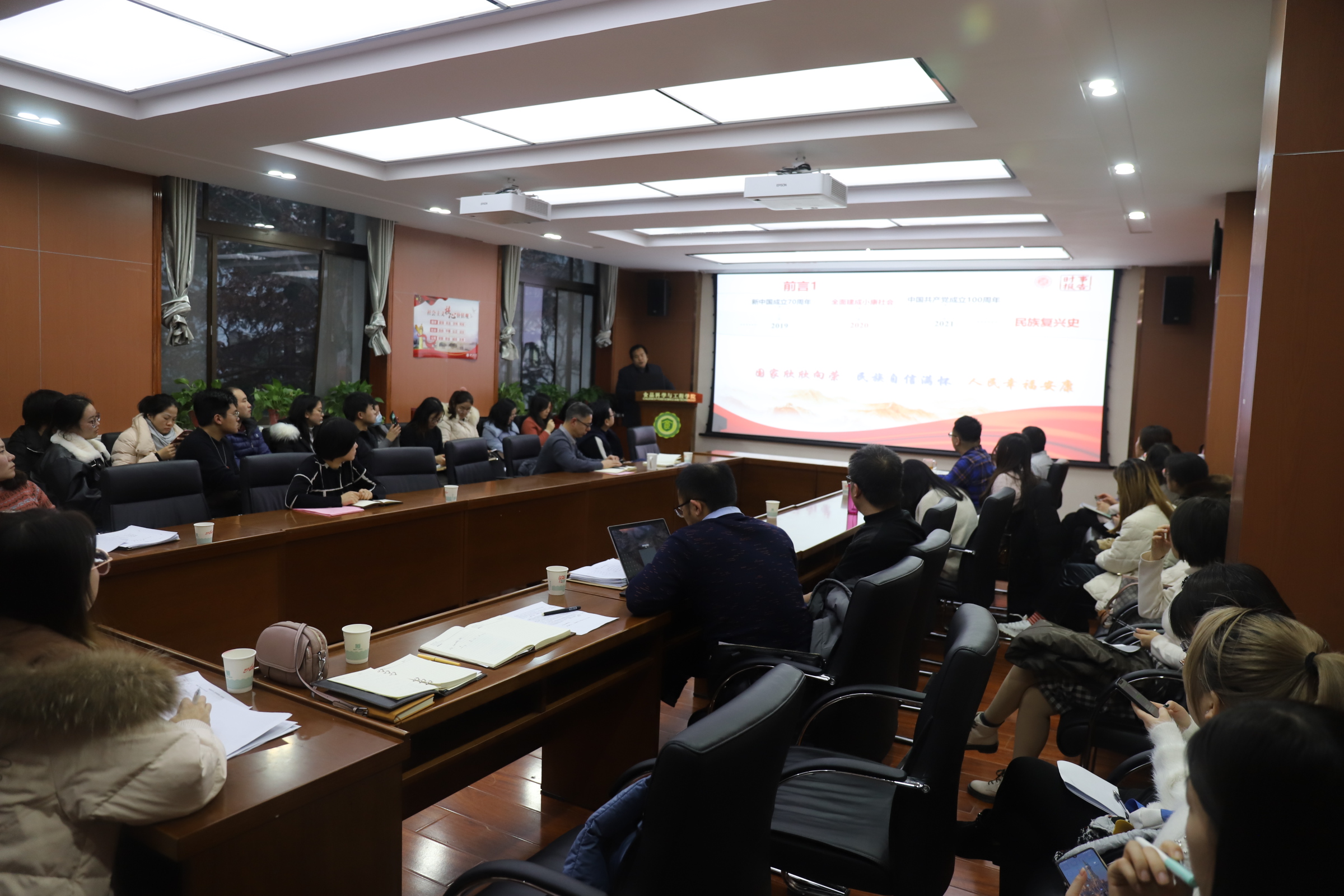 12月23日下午,365英国官网邀请365英国上市公司官网党的十九届五中全会精神宣讲团成员、马克思主义学院曹建军副教授来院作专题辅导报告。学院党政班子成员、全体师生党员参加了本次报告会,报告会由支部负责人主持。
