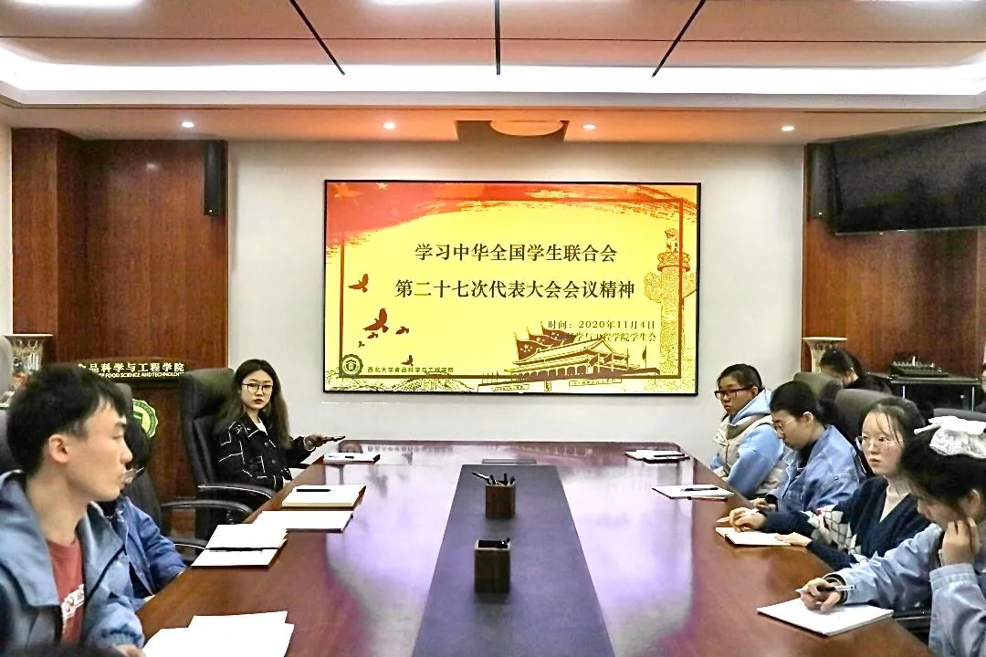 为更好地服务身边同学,进一步深化学生会改革,11月4日中午,新一届学生会成员集中学习了全国学联二十七大精神及365英国上市公司官网学生会第一次主席联席会内容。会议由院学生会主席团成员胡婧主持,团委书记刘艺洋老师,辅导员周炳莹老师和院学生会全体成员参加会议。