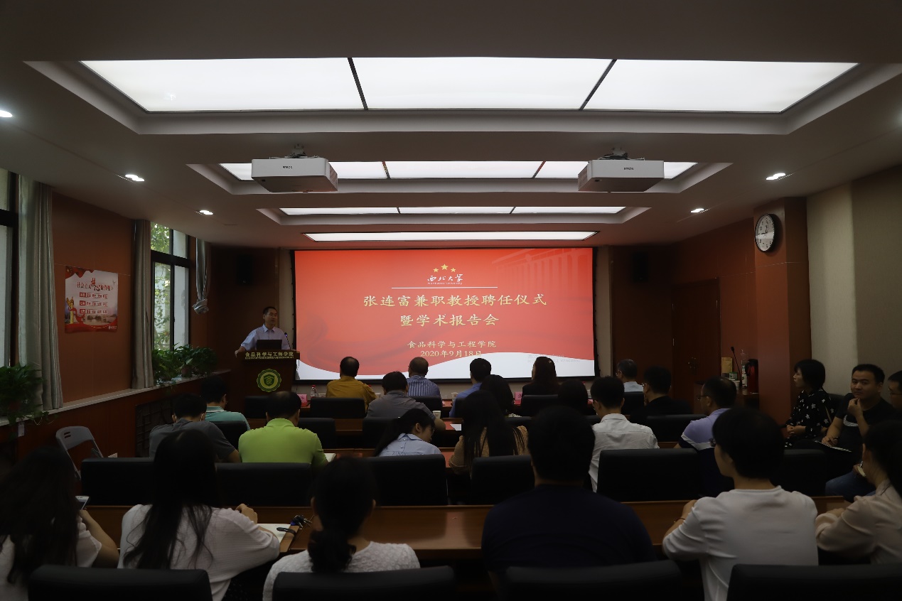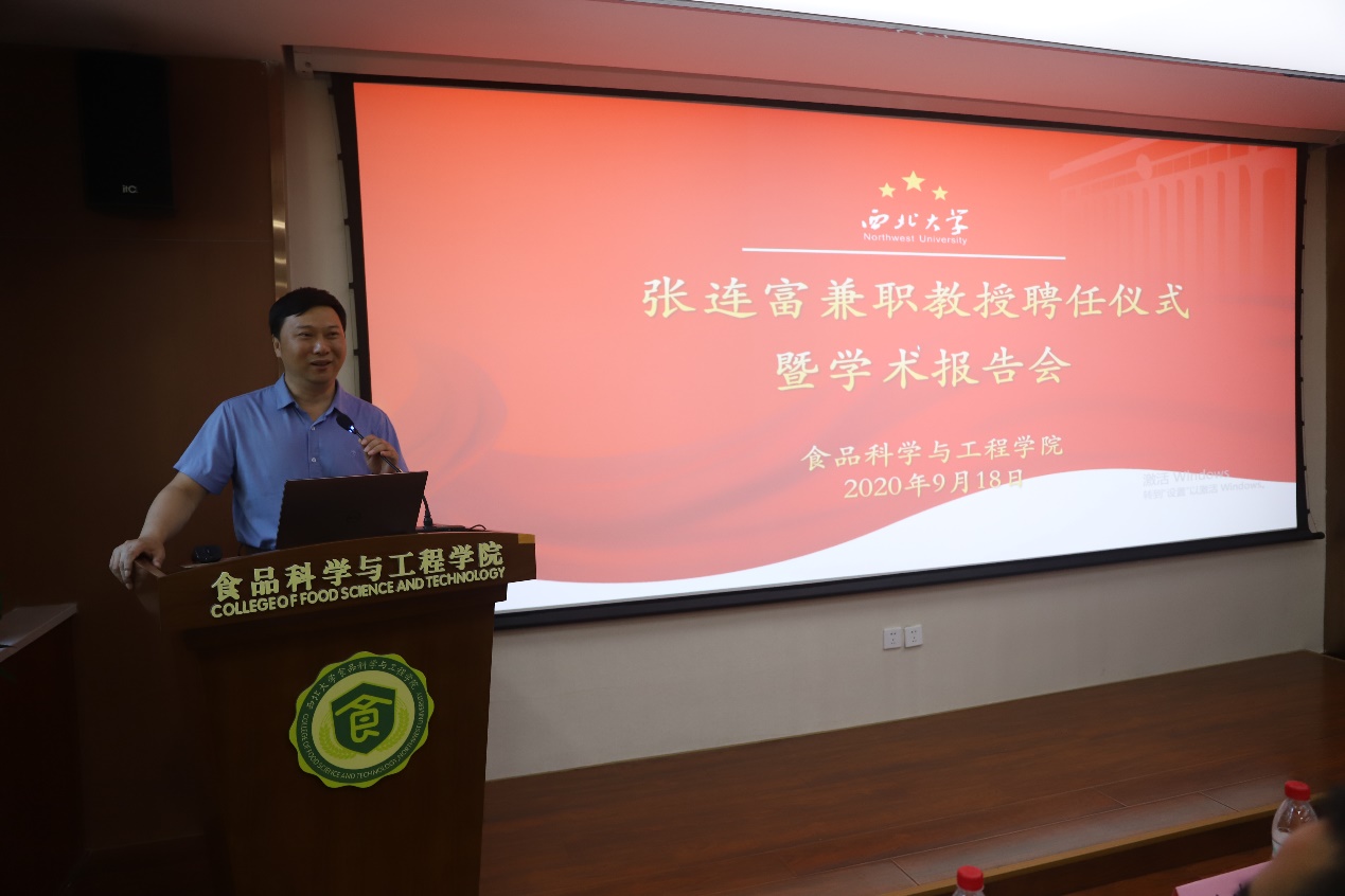9月18日,江南大学食品学院教授、博士生导师,国家功能食品工程技术研究中心副主任,CFDA保健食品评审专家,农业农村部农产品加工专家委员会委员,国家科技奖、教育部科技奖评审专家张连富教授,受聘为我校兼职教授,并做客“创新论坛”第九百七十七讲。校党委常委、副校长赖绍聪,人力资源部副部长张现,陕西省功能食品工程中心主任刘建书、生命学院和365英国官网相关师生参加了报告会。会议由365英国官网王仲孚副院长主持。