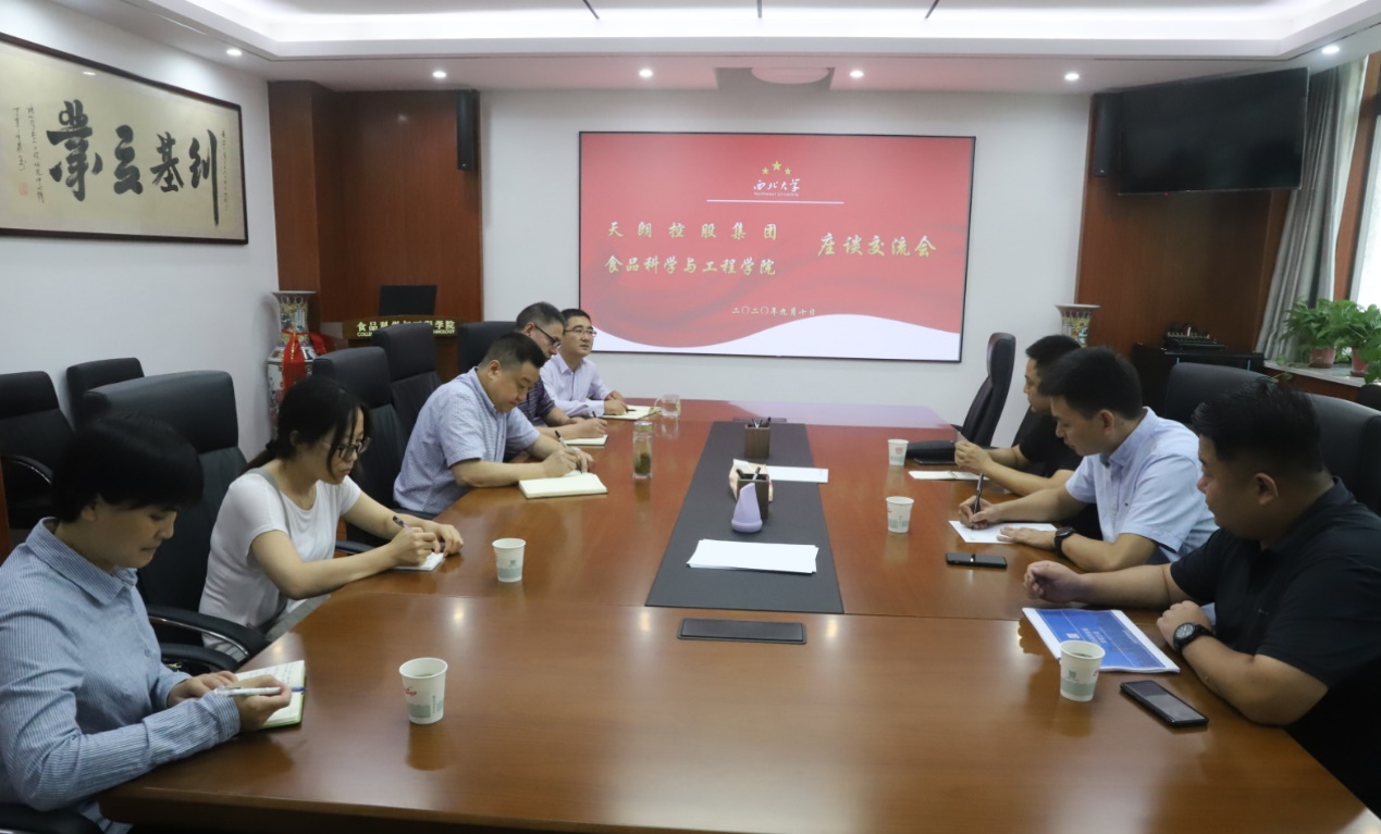 9月10日上午,天朗控股集团朱学亮、宋文漪、杜海平三位部门负责人一行来365英国官网洽谈合作事宜,岳田利院长、刘晓忠书记、骆艳娥教授、宋微副教授、王媛副教授出席了座谈会,会议由赵会武副院长主持。
