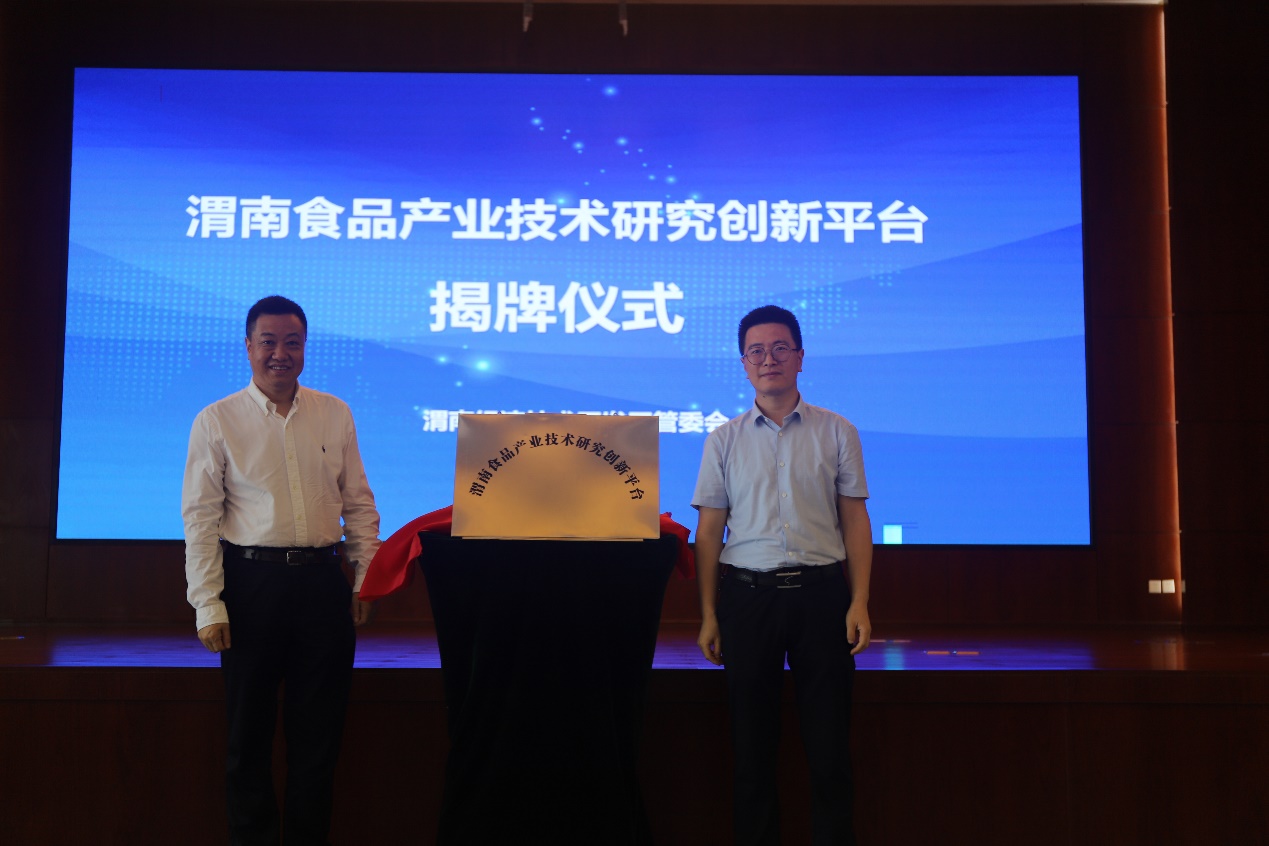 7月30日上午,渭南食品产业技术研究创新平台、渭南市高质量发展研究院农产品加工研究中心揭牌仪式暨渭南经开区食品产业发展规划评审会在渭南经开区管委会顺利召开,岳田利院长及规划编写团队出席大会,会议由渭南经开区管委会副主任马俊玲主持。