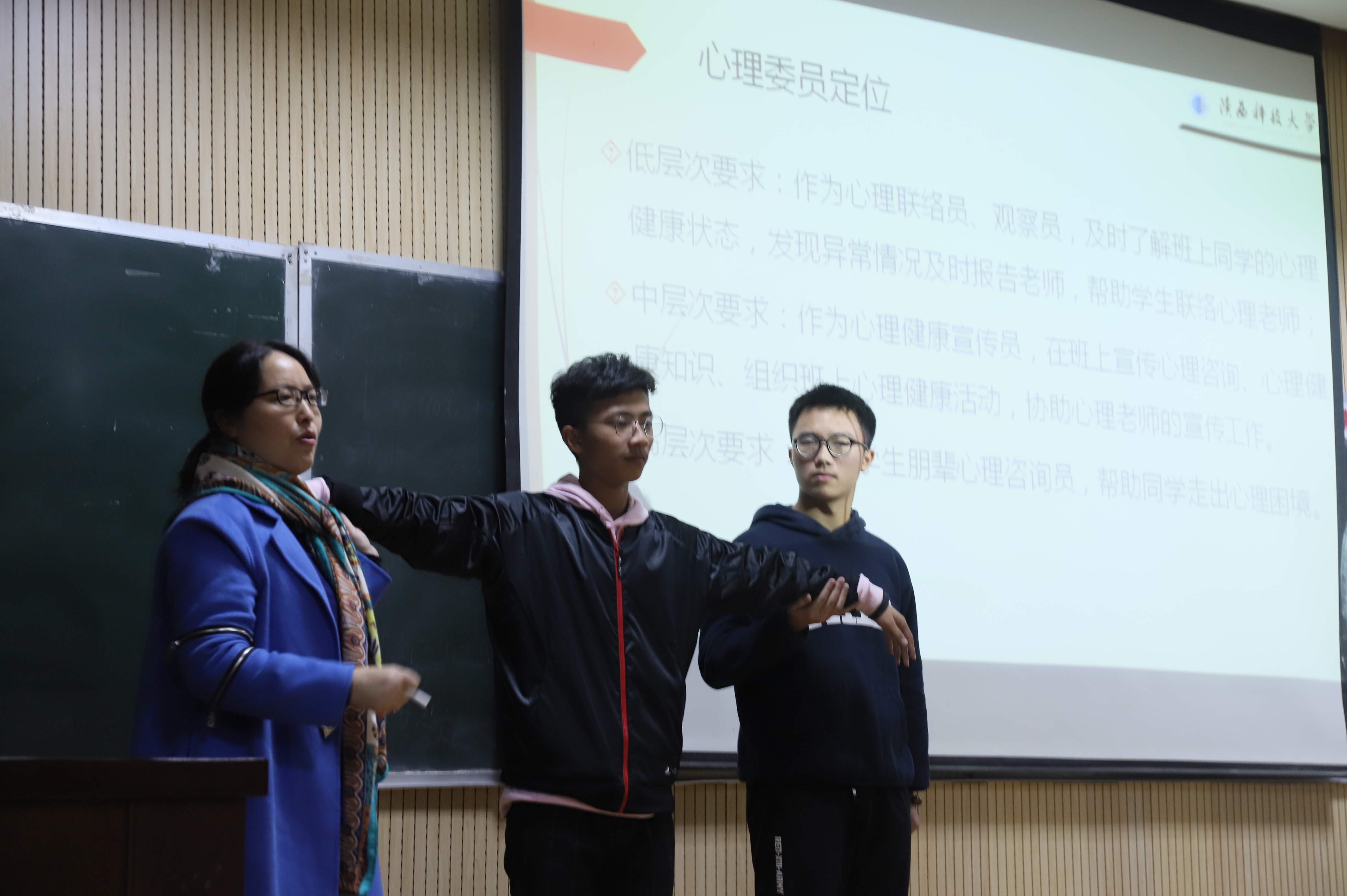 为了深入推进365英国官网大学生心理健康教育工作,切实发挥心理委员朋辈互助的积极作用。2019年11月10日晚,365英国官网邀请了陕西科技大学心理健康教育中心主任董雪副教授,做了题为《朋辈心理咨询的重要性》的专题讲座,全体心理骨干30余人参加了专题培训。