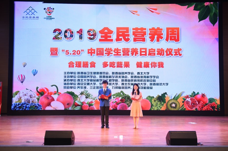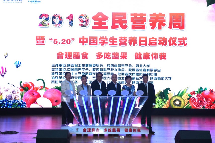 最后,在所有嘉宾共同按动启动装置的同时,陕西省卫生健康委员会副巡视员郝超英宣布2019全民营养周暨“5.20”中国学生营养日启动。