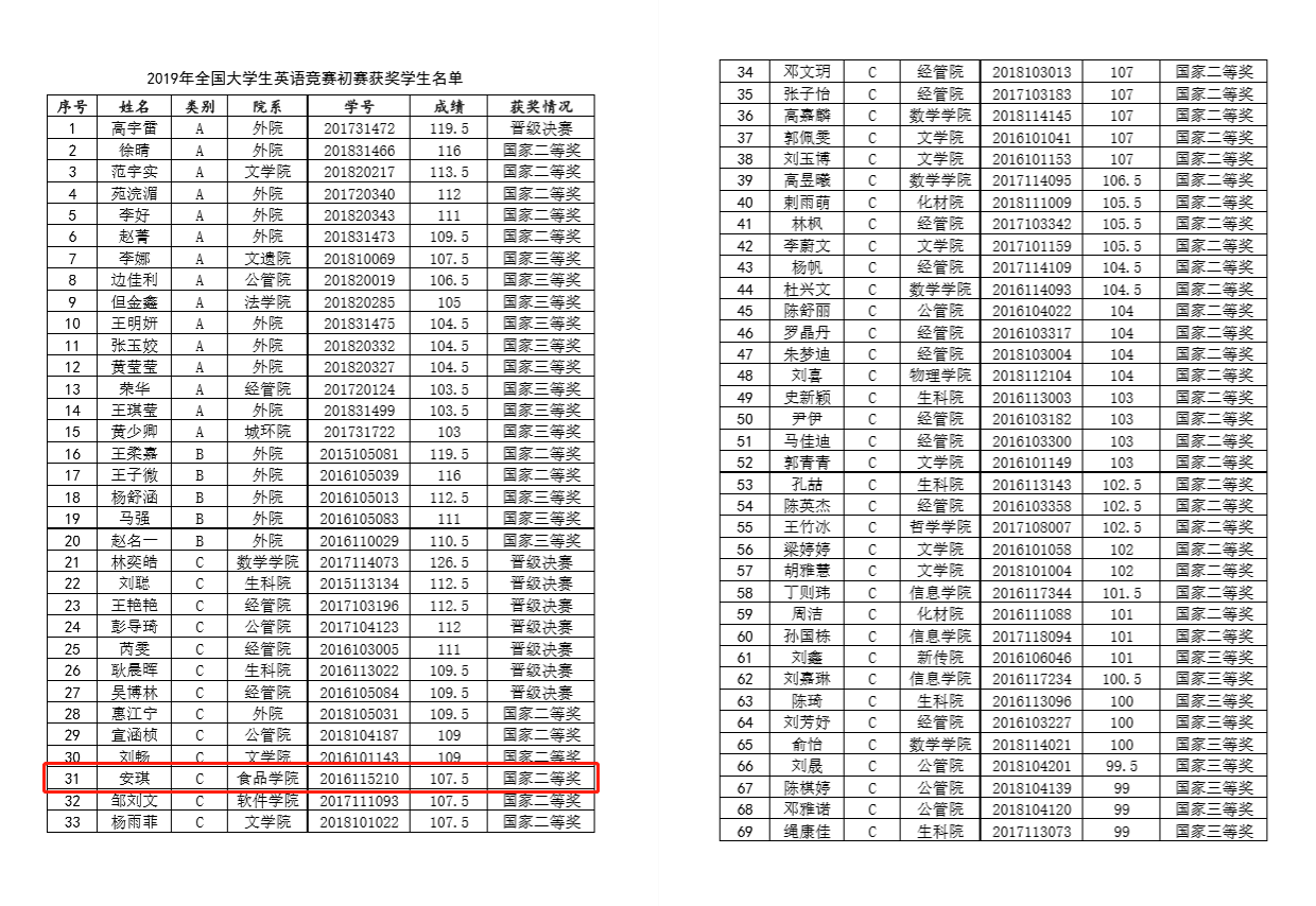 4月14日,2019年全国大学生英语竞赛初赛在我校举行。按照全国竞赛组委会的工作要求和评分标准,学校组织专业教师团队,集中、封闭、流水阅卷,汇总并公布了初赛成绩及获奖学生名单,本次初赛我校共有114人获奖。其中晋级决赛8人,国家二等奖41人,国家三等奖65人。365英国官网2016级安琪同学荣获2019年全国大学生英语竞赛初赛二等奖。