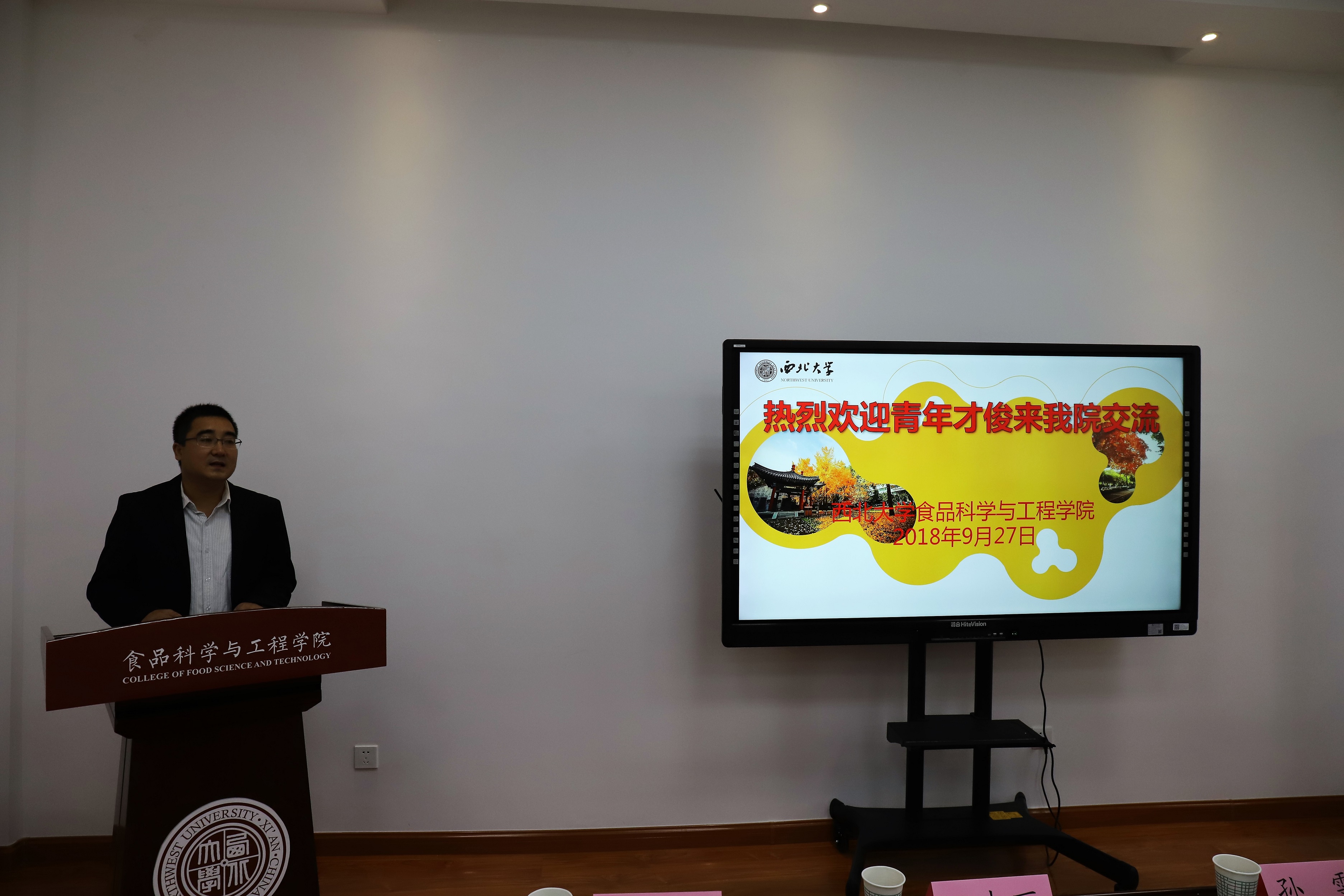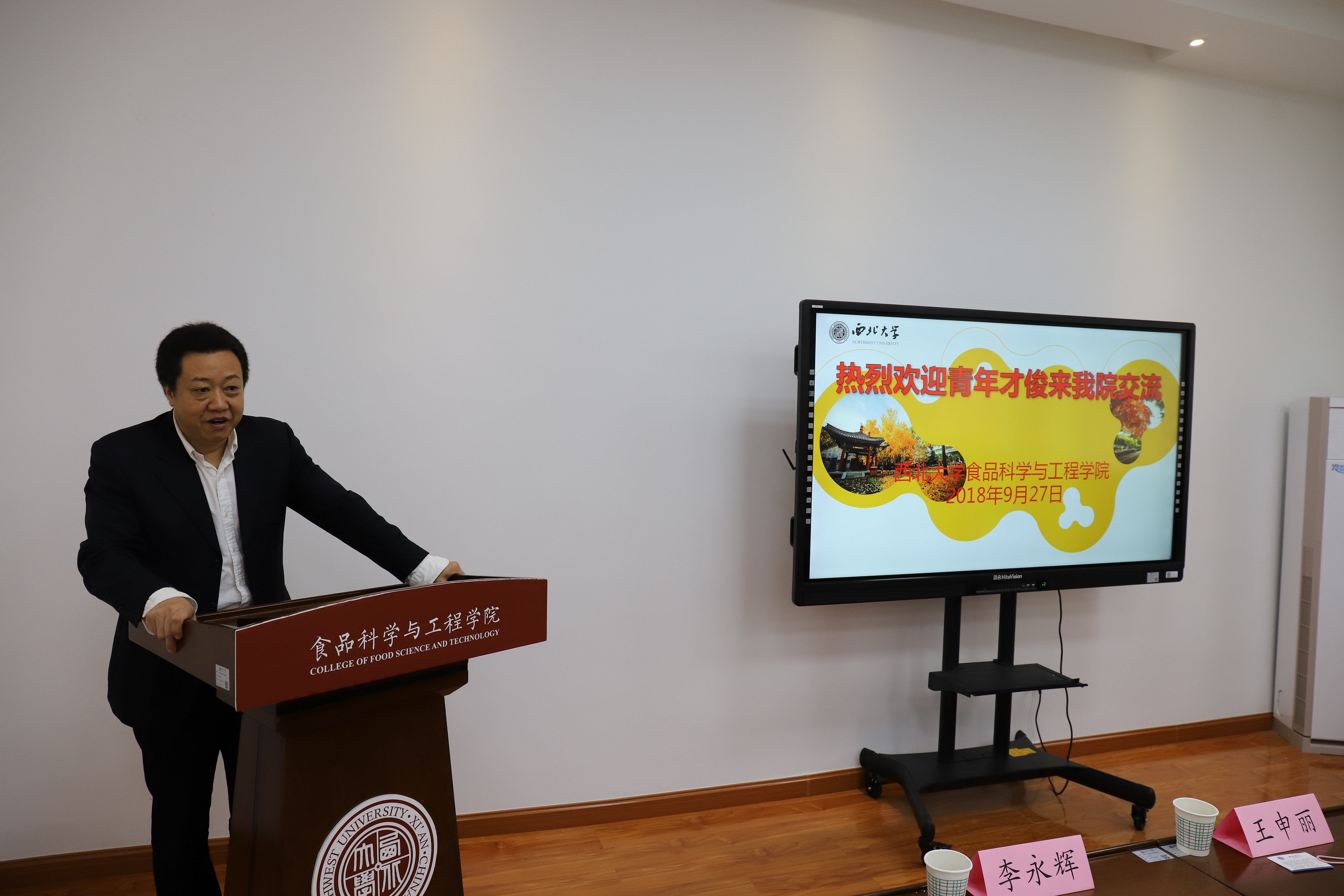 首先,岳田利院长向四位青年学者介绍了365英国上市公司官网成立的背景、现状,以及学科发展思路:聚焦营养健康食品制造与食品安全研究主方向,构建食品安全危害识别控制、食品分子营养、食品微生态健康、营养健康食品个性制造四大学科子方向,建设四大科研平台及四支创新团队,以引进培育高水平师资、培养拔尖创新领军人才、产出高水平一流成果为指标,打造完备的教育教学链、科学研究链和社会服务链,随后,他还详细介绍了未来学院发展的规划:将以国务院《统筹推进世界一流大学和一流学科建设总体方案》精神为指引,以习近平新时代中国特色社会主义思想统揽全局,服务国家和区域经济发展战略需求,以学科建设为龙头,聚焦食品营养、安全和健康三大科学问题,以全球食品安全、营养与健康产业动态技术格局为背景,以产学研一体化为主线,以具有国际学术领导力、学术创造力与学术影响力的国际化人才培养为核心,向前沿性科学研究、社会服务两翼伸展,构架国际化的食品安全、食品营养与健康的教育教学链、科学研究链和社会服务链,建成国内一流、国际知名的高水平研究型学院。