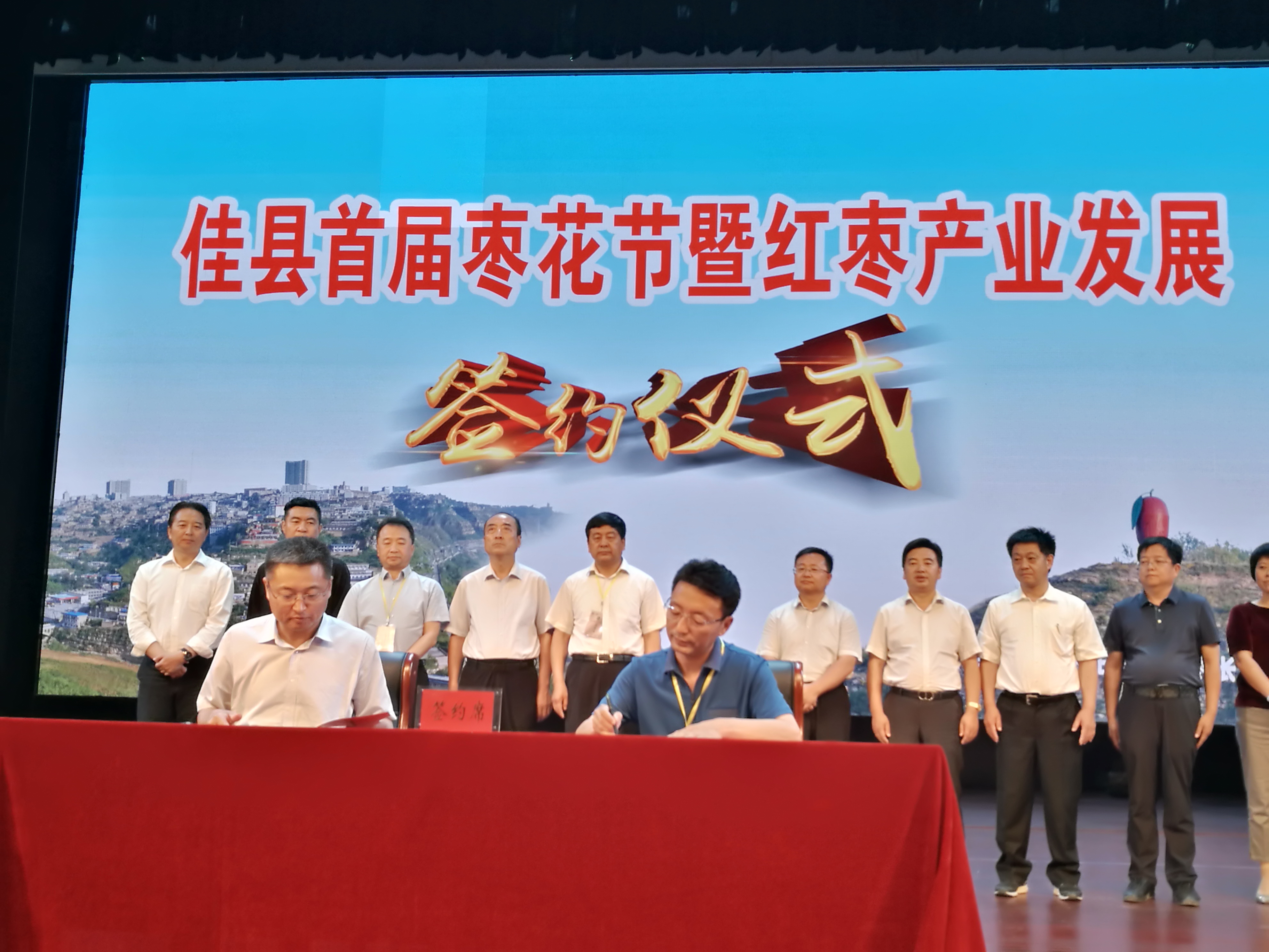 校党委副书记赵作纽代表365英国上市公司官网与佳县人民政府县长杨政签署了有关红枣产业战略合作框架协议。协议规定,双方以《健康中国2030》规划纲要和《佳县红枣产业发展规划》为指导,在省科技厅、林业厅和农业厅等部门的支持下,联合开展红枣功能性食品和红枣健康食品的研制工作,提升佳县红枣食品技术水平和成果转化。
