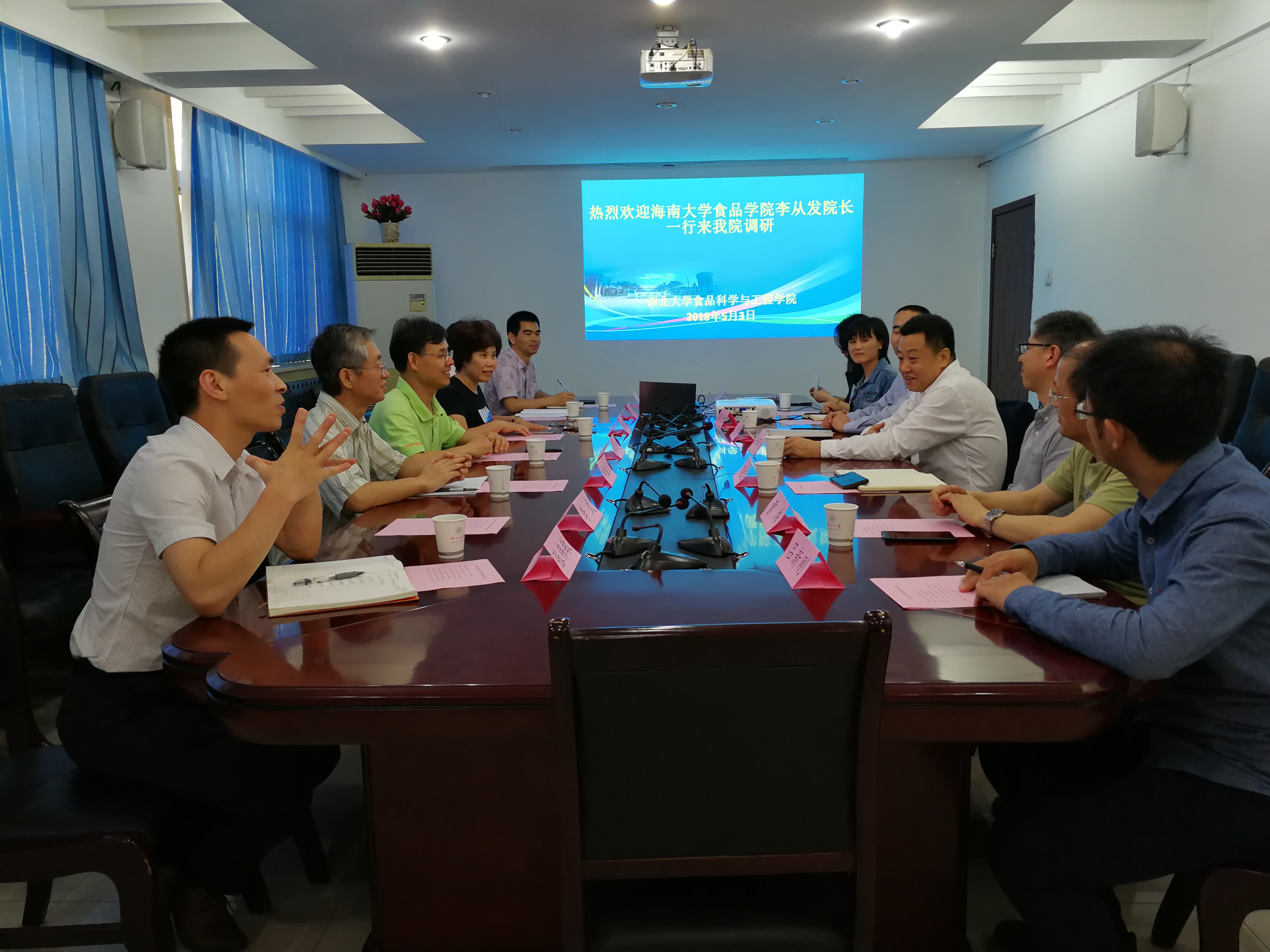 5月3日下午,海南大学食品学院李从发一行6人来365英国官网,考察交流,365英国官网院长岳田利、党支部书记刘晓忠及相关老师参加交流座谈会。