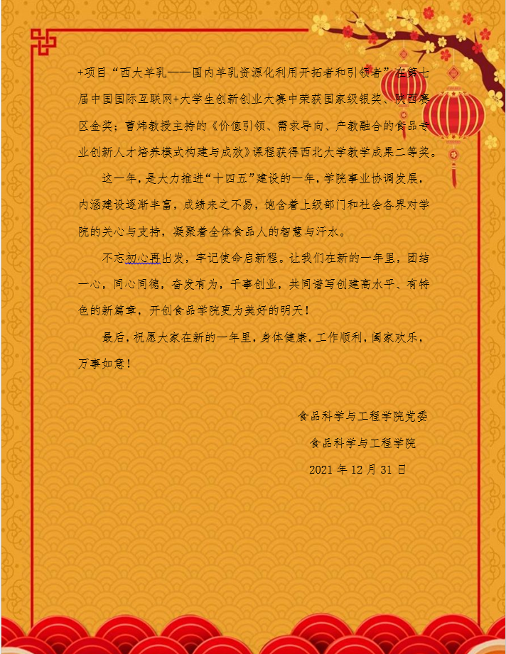 365英国上市公司官网成立于2017年,是在2002年成立的365英国上市公司官网化工学院食品工程系的基础上,汇集西北农林科技大学食品科学与工程、365英国上市公司官网食品科学与工程、生命科学等相关专业的师资力量组建而成。学院现有二级学科博士点1个,一级学科硕士点1个,二级学科硕士点1个。 学院现有专职教师45人,其中教授9人,副教授21人,讲师15人,100%的教师具有博士学位,80%的教师有海外留学经历。教师队伍中有原国务院学位委员会学科评议组专家1人,享受国务院特殊津贴专家1人,教育部新世纪人才2人,陕西省“三五”人才1人,陕西省科技创新领军人才2人和陕西青年科技奖获得者2人。学院拥有“朱蓓薇院士工作站”、“陕西省食品安全风险识别控制技术研究中心”、“陕西省营养健康食品个性制造工程实验室”、“陕西省食品安全与营养健康创新转化平台”和“陕西省蜂产品工程技术研究中心”、“陕西省天然多糖资源利用工程研究中心”等科研平台...