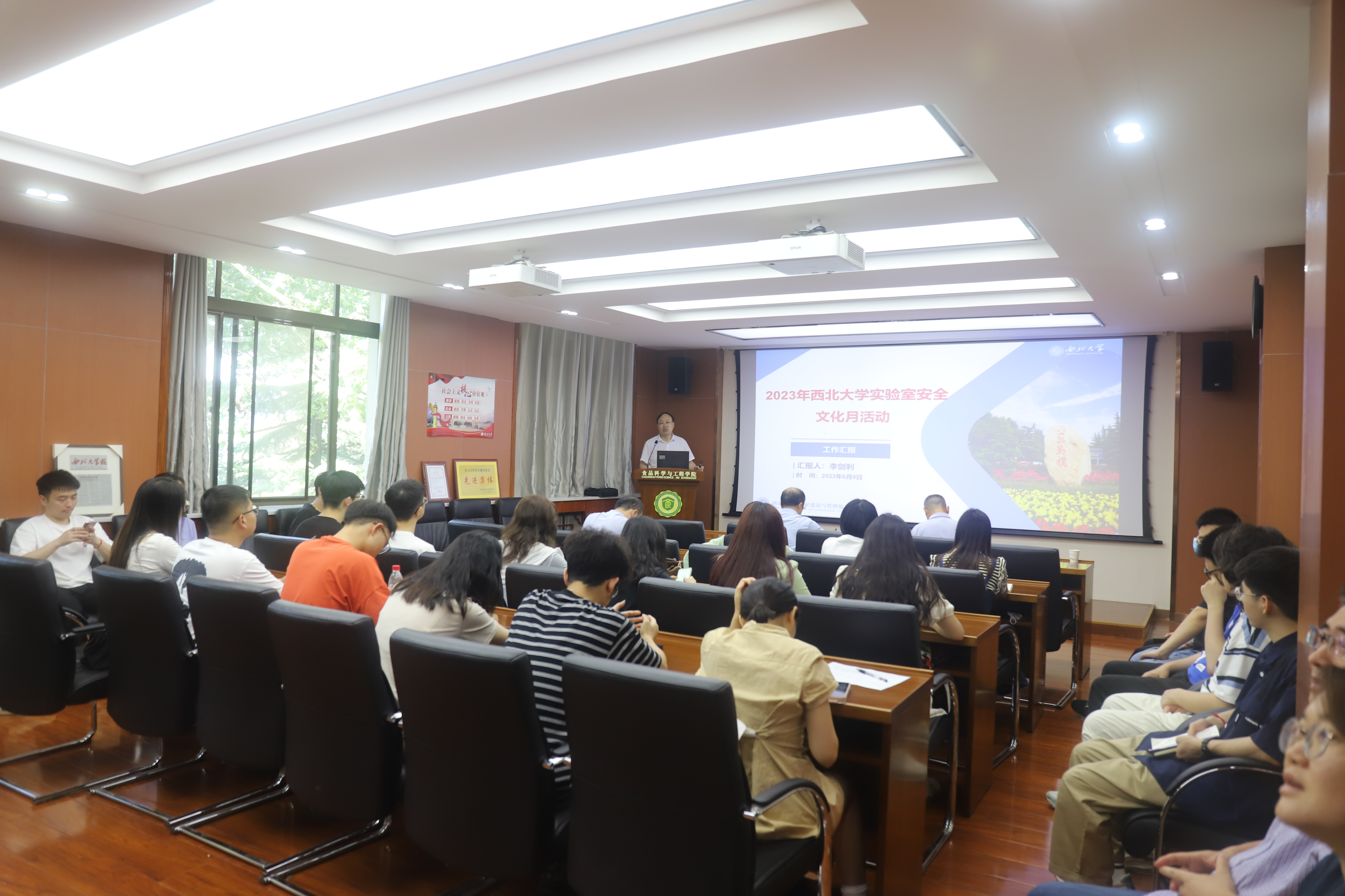 为进一步加强实验室安全教育,提高师生的安全红线意识和应急处理能力,6月9日下午,学院开展了主题为“强化安全意识,筑牢安全防线”的安全教育培训会,邀请我校实验室建设与管理处处长李剑利做专题报告,会议由曹炜副院长主持,学院党委书记刘晓忠、实验管理科科长牛耕、教师代表、办公室和实验室管理人员以及研究生代表参加会议。