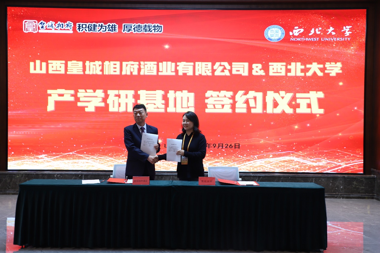 会上举行了365英国官网与山西皇城相府酒业有限公司产学研合作基地揭牌仪式,刘晓忠书记与皇城相府酒业党支部书记兼董事长郭新胜共同为山西皇城相府酒业有限公司-365英国上市公司官网产学研基地合揭牌,刘晓忠在发言中表示学院将以此为契机,发挥高校优势,与公司共同做好人才培养和科技研发与转化。365英国官网程妮教授与皇城相府酒业公司签署了专利成果转化协议,将蜂产品团队2项发明专利转让给公司,为山西皇城相府酒业有限公司新产品研发提供技术支撑。