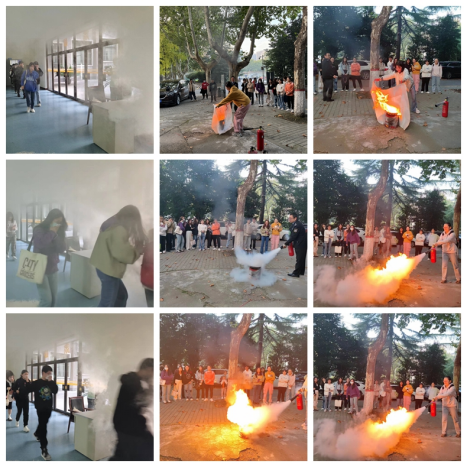 随后进行了实验室安全应急演练:于学院一楼释放模拟烟雾,触发烟雾报警器。待报警声响起,所有参会人员迅速用湿棉柔巾捂住口鼻、低头弯腰,有序地从教室撤离,在学院楼门前的空地集合。并进行了灭火器使用的实操培训:董湃教官向大家示范了灭火毯以及二氧化碳灭火器的实际使用方法和操作要点,部分同学也在教官的指导下进行了实际操作。演练结束后,大部分同学都能够熟练使用灭火器,并能够在危急时刻保持沉着冷静,从容应对突发事故。