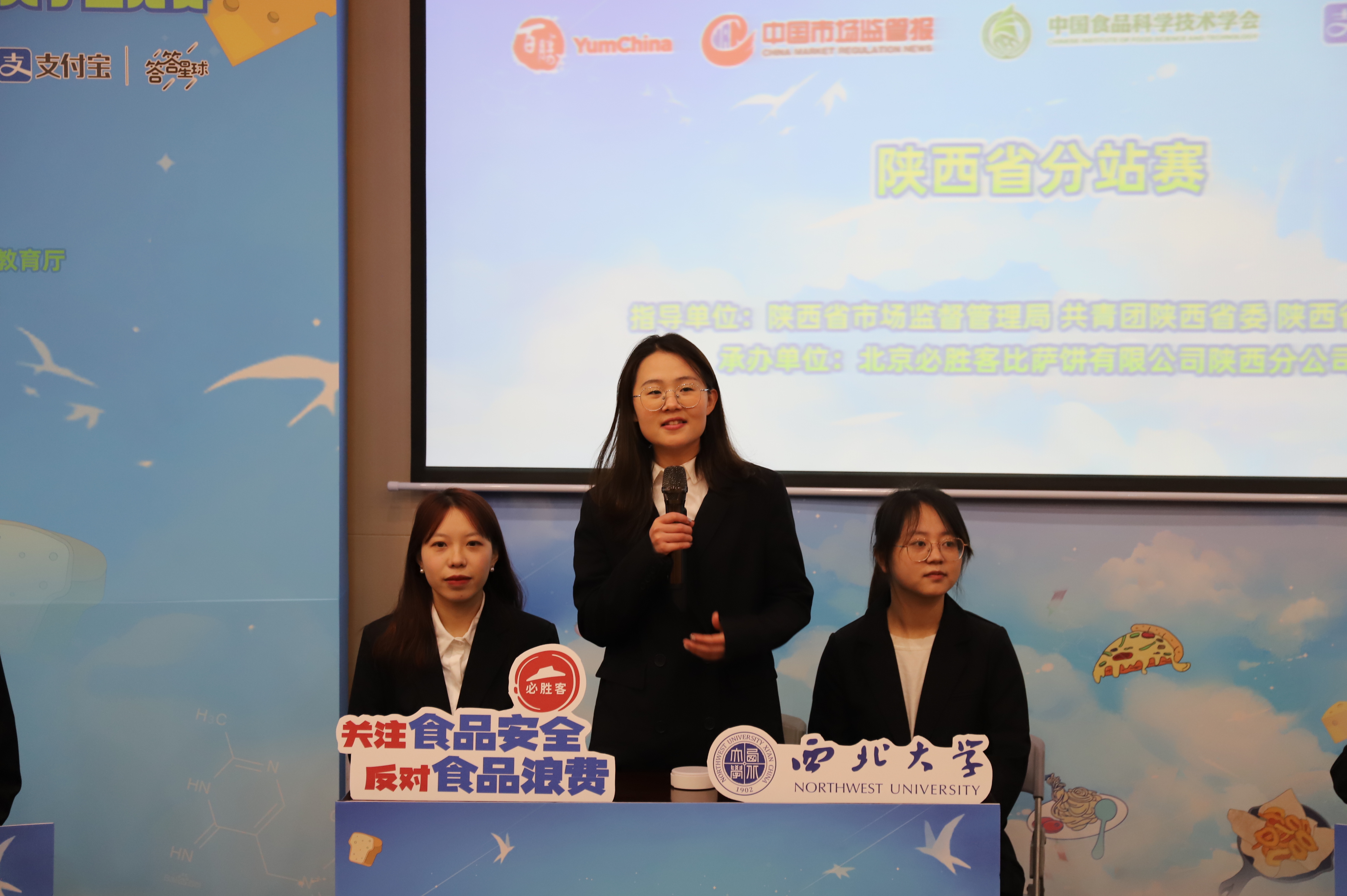 随后,陕西师范大学、陕西科技大学、长安大学和我校代表队现场进行陕西省食品安全与营养健康知识竞赛决赛。在比赛过程中,我校三名同学沉着冷静,从容作答,获得了优异的成绩,展现了我校学子的青春风采。