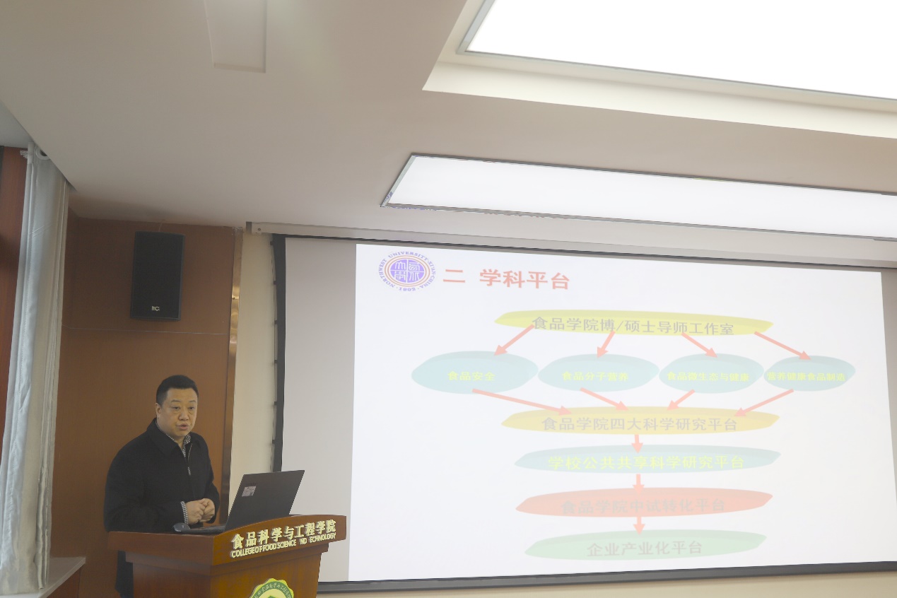 蒋林高度评价了学院的跨越式发展,指出大家要思考“学院取得成绩靠的什么?未来靠什么继续推动发展?”这一问题,要求食品学院师生做好西大精神传承,发挥好综合性大学基础学科强的优势,加强学科交叉融合,聚焦特色优势方向,提高学院治理效能,坚持高质量内涵式发展理念,不断提高人才引进质量和成果产出。