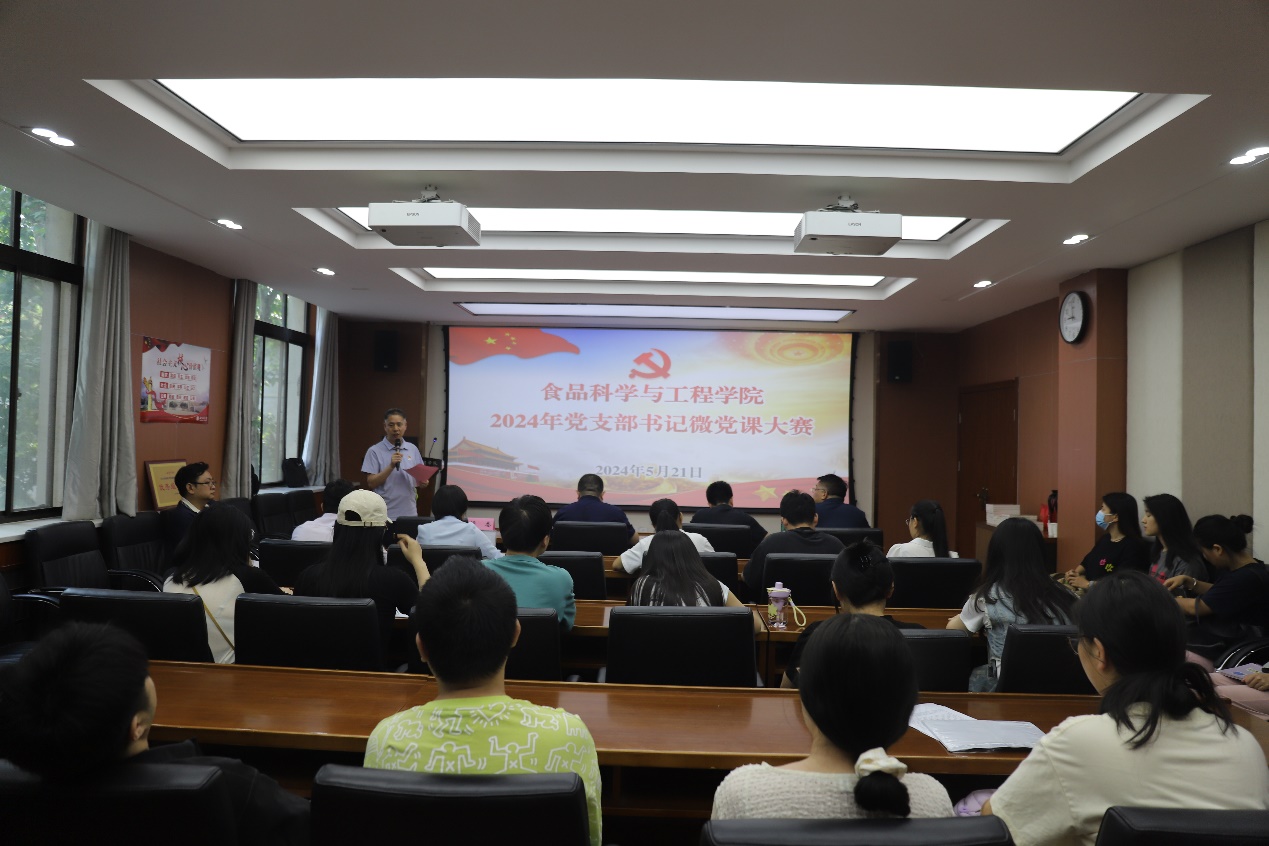 刘晓忠在主持比赛时强调,各支部书记要把讲授微党课作为提高师生党员理论素养和政治自觉、提升师生理论宣讲能力的重要载体,加强支部建设,紧紧围绕党纪学习教育,引领师生党员学纪、知纪、明纪、守纪,发挥党支部战斗堡垒作用和党员先锋模范作用,全力推进食品学科建设、人才培养、科研创新和社会服务等重点工作。