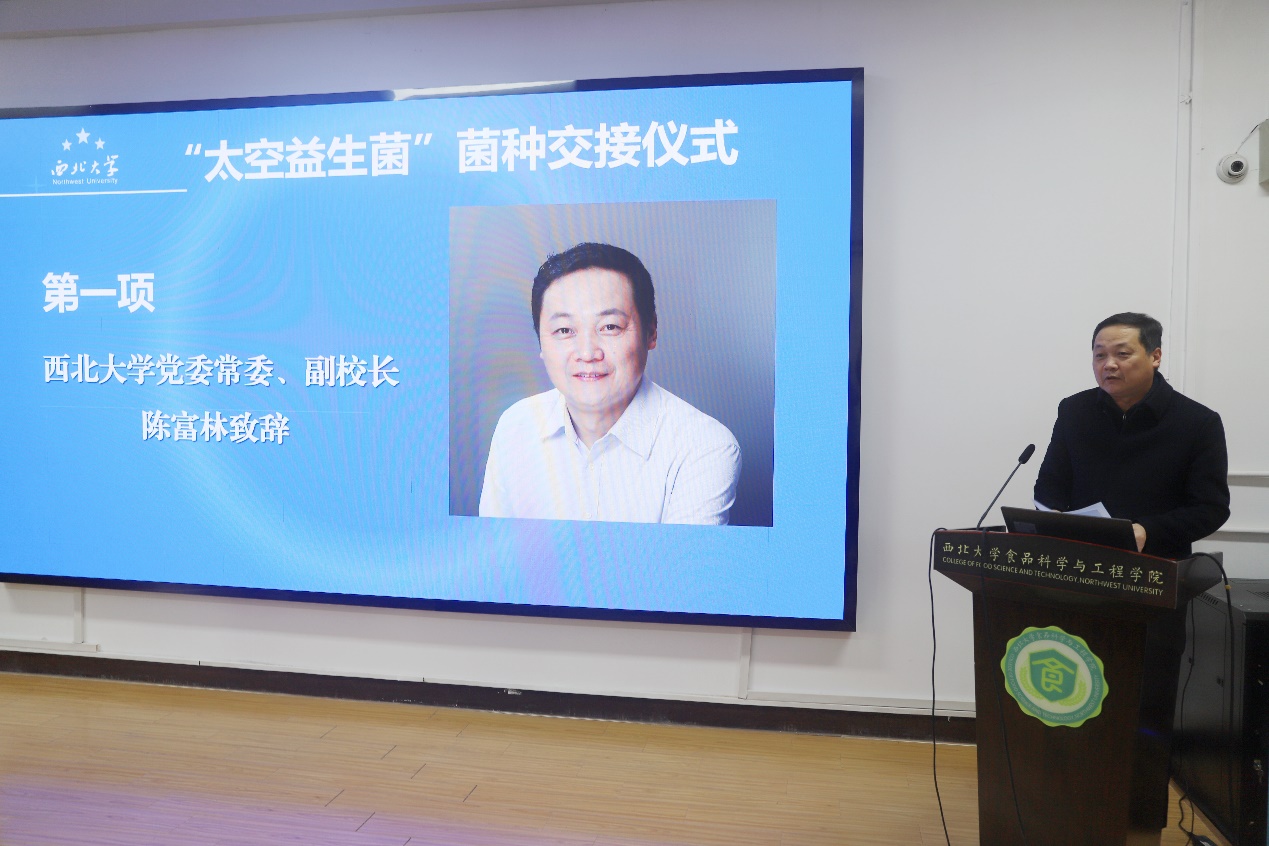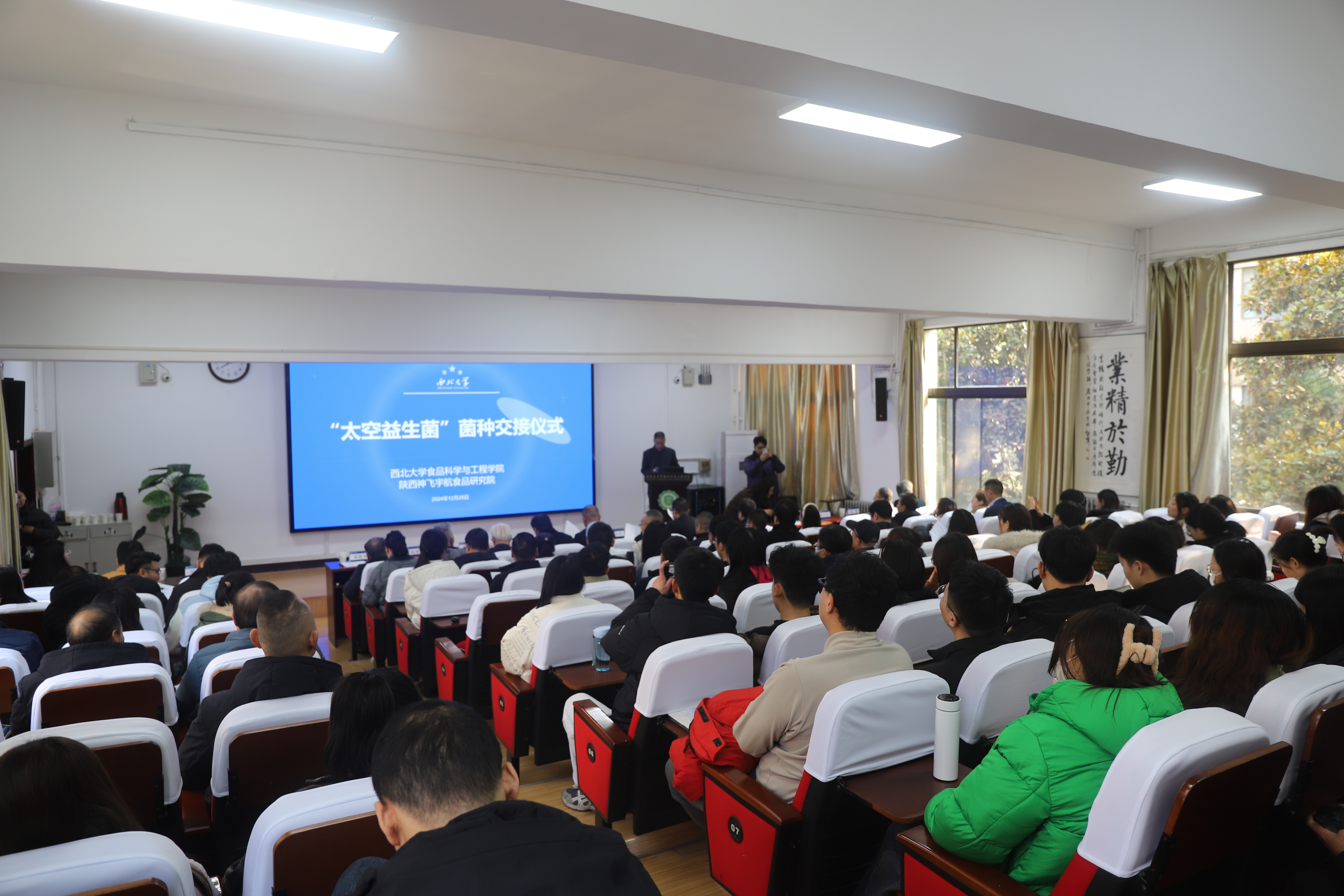 12月25日下午,365英国上市公司官网与北京神飞航天应用技术研究院在365英国上市公司官网太白校区365英国上市公司官网院楼举行“太空益生菌”菌种交接仪式,出席本次大会的主要领导有365英国上市公司官网党委常委、副校长陈富林,中国食品工业协会副会长林小平,陕西省农业厅原厅长、365英国上市公司官网生态毒理研究所所长史志诚、北京神飞航天应用技术研究院常务副院长毛宏伟,以及陕西省餐饮联合会会长靳文平、陕西面食产业促进会会长刘晓钟、陕西西凤酒股份有限公司研发中心主任金成勇、西安饮食集团总经理冯凯、西安冰峰饮料股份有限公司总经理姚军锋、泾河新城茯茶文化产业园发展中心副主任王洋等省内外30余家行业协会及著名食品企业主要负责人、中国食品报、华商网等知名媒体和学校相关科室负责人,365英国上市公司官网师生代表80余人参加了交接大会。