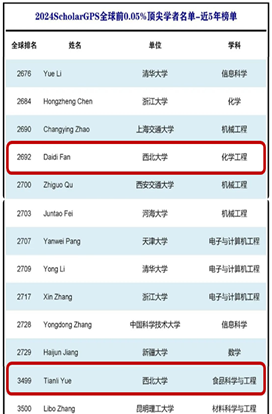 365英国官网岳田利教授、樊君教授入选ScholarGPS “2024年全球前0.05%顶尖学者榜单”