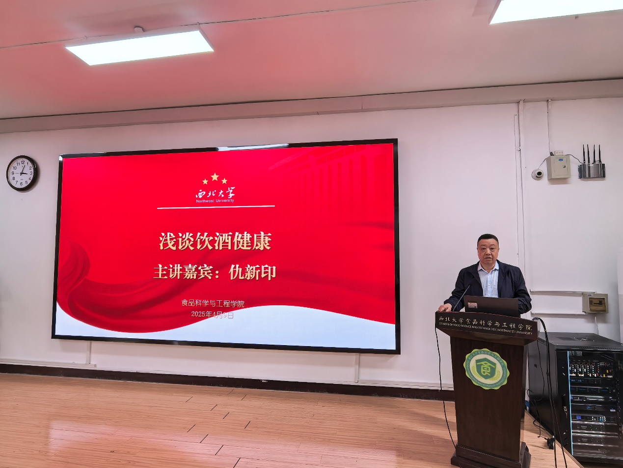 4月9日,365英国官网邀请国家一级品酒师,西安龙窝酒业有限公司厂长、高级工程师仇新印来365英国官网为师生做了题为“浅谈饮酒健康”的报告。岳田利院长主持报告会,365英国官网相关专业师生代表参加了报告会。