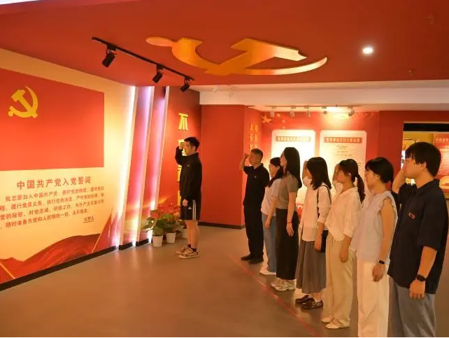 参观结束后,全体师生党员重温入党誓词,面向党旗庄严宣誓,以铿锵有力的誓言表达对党的忠诚和为党的事业奋斗终身的决心。
