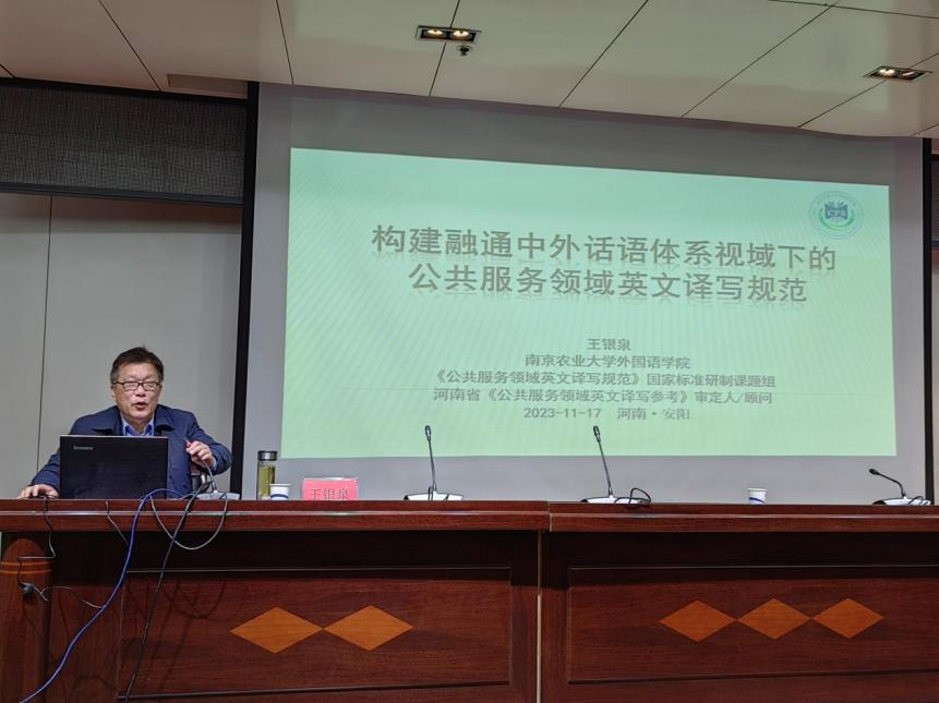 11月17日上午,应我校beat365在线唯一官网邀请,南京农业大学beat365在线唯一官网教授王银泉在艺术楼二楼报告厅为beat365在线唯一官网师生作题为“构建融通中外话语体系视域下的公共服务领域英文译写”的学术报告。beat365在线唯一官网300余名师生参加报告会。