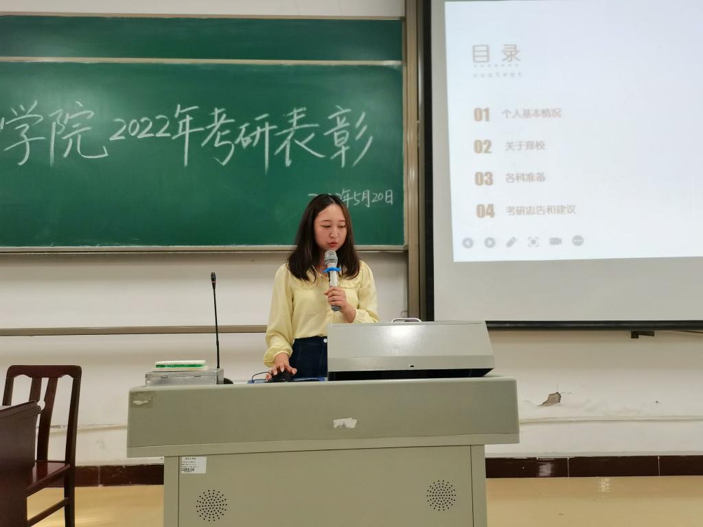 表彰会后,杨舒雅、陈志炜两位同学,分别详细分享了个人考研经验,从如何选择学校到如何复习备考的细节等,并对学弟学妹们进行了考研答疑。