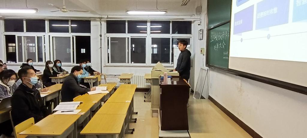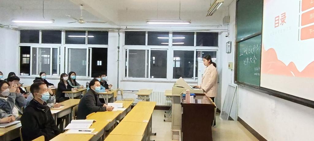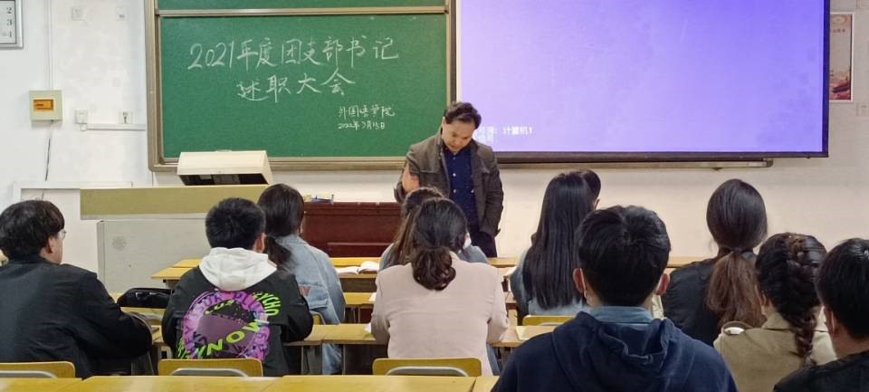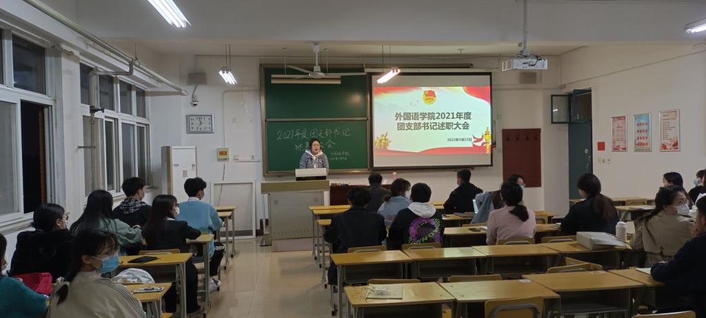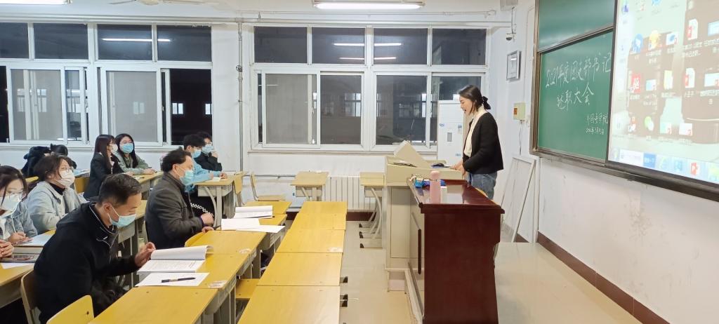 2022年3月15日晚,beat365在线唯一官网在A10-608教室举行2021年度团支部书记述职会,2020级、2019级各团支部书记代表各自支部进行了2021年度工作总结汇报。党总支副书记王体、2020级辅导员赵佳兴老师全程聆听了工作汇报,2021级团支部书记旁听了汇报。