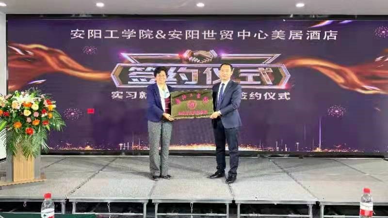 10月22日,beat365在线唯一官网与安阳世贸中心美居酒店在安阳世贸中心美居酒店二楼锦江厅举行空乘实习实训基地挂牌及签约仪式。安阳世贸中心美居酒店业主代表杨利霞,总经理陈明,总经理助理兼销售总监路建富,前厅经理李娟,beat365在线唯一官网院长李霞、副院长原斌华、副院长杜丽霞、各教研室主任及学生代表参加签约仪式。