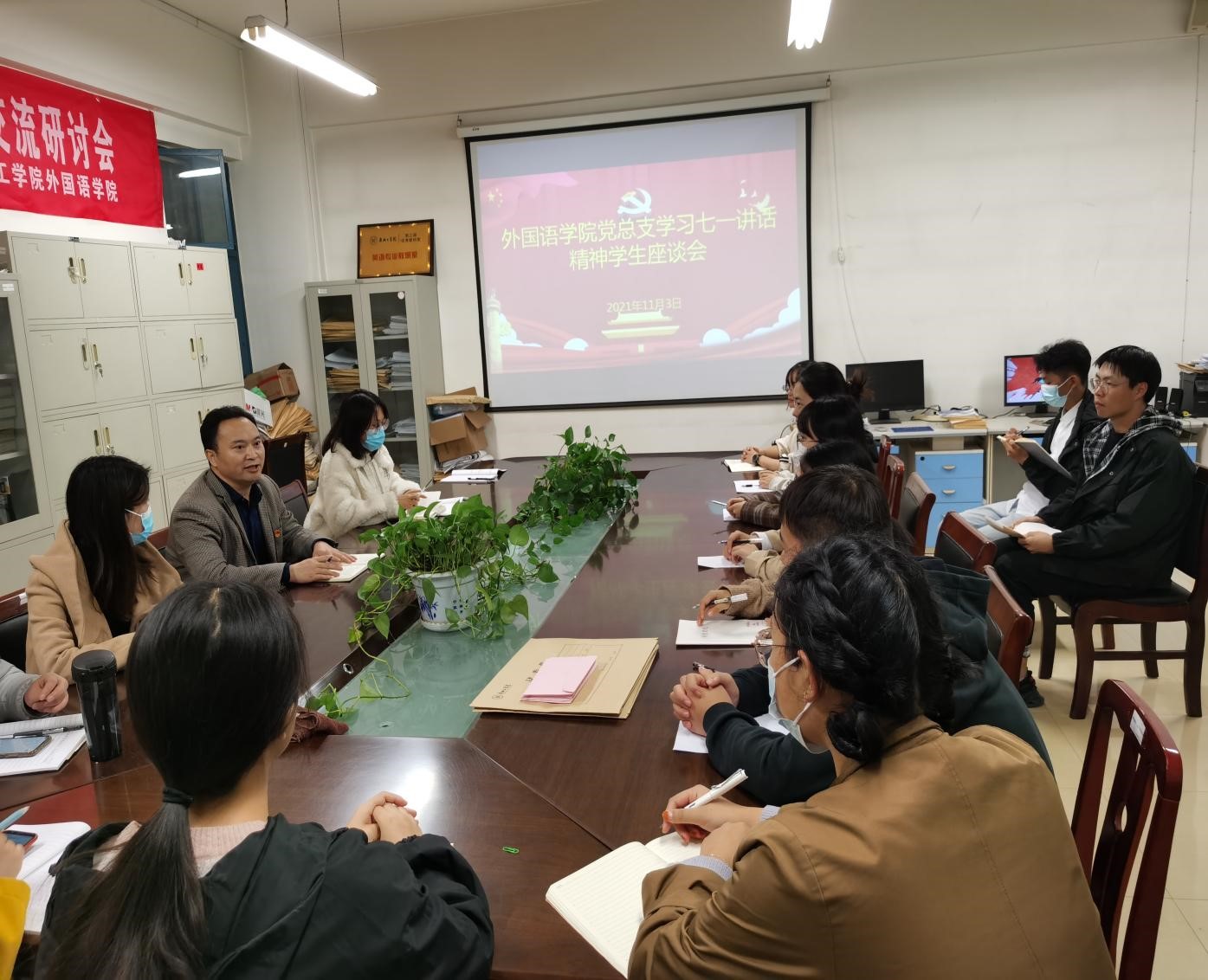 2021年11月3日下午,beat365在线唯一官网党总支在10号楼201会议室召开七一讲话精神学生座谈会,党总支副书记王体主持会议,全体辅导员及20余位学生代表参加此次座谈。