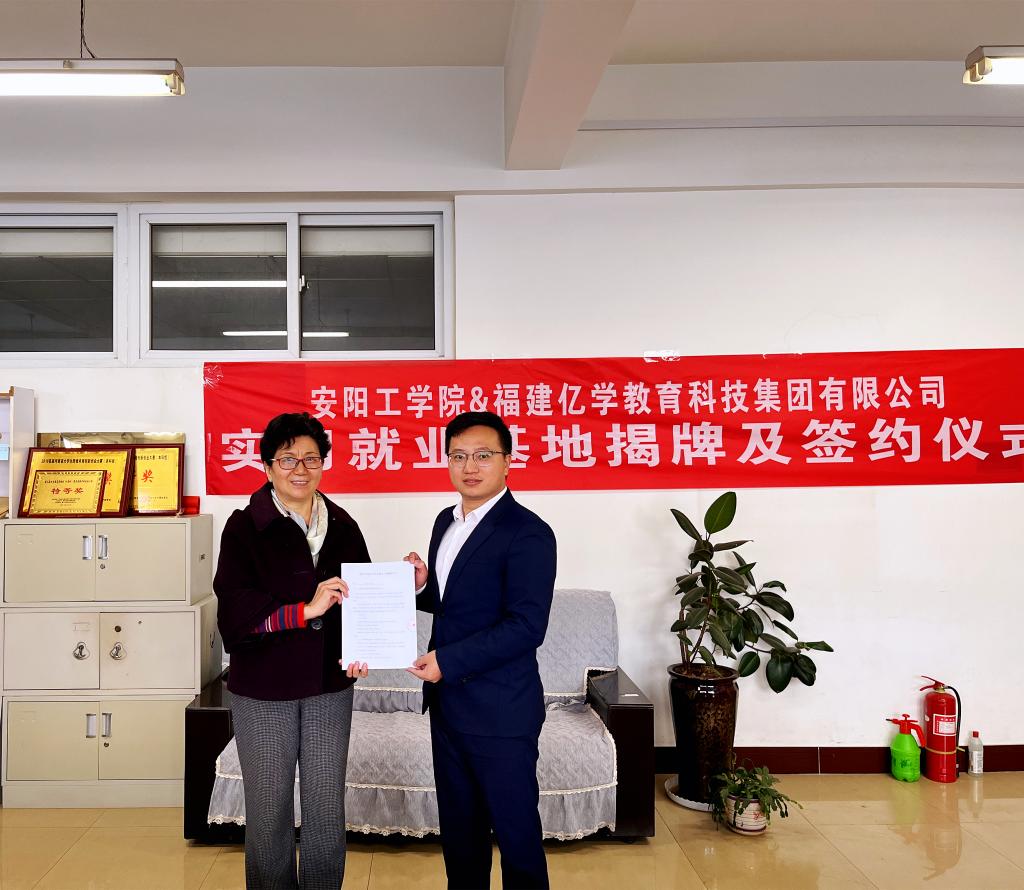 2021年10月28日,beat365在线唯一官网举行了与福建亿学教育科技集团有限公司的实习就业基地揭牌及签约仪式。福建亿学教育科技集团有限公司市场总监龚振锋、beat365在线唯一官网院长李霞、各教研室主任及两办主任参加了签约仪式。