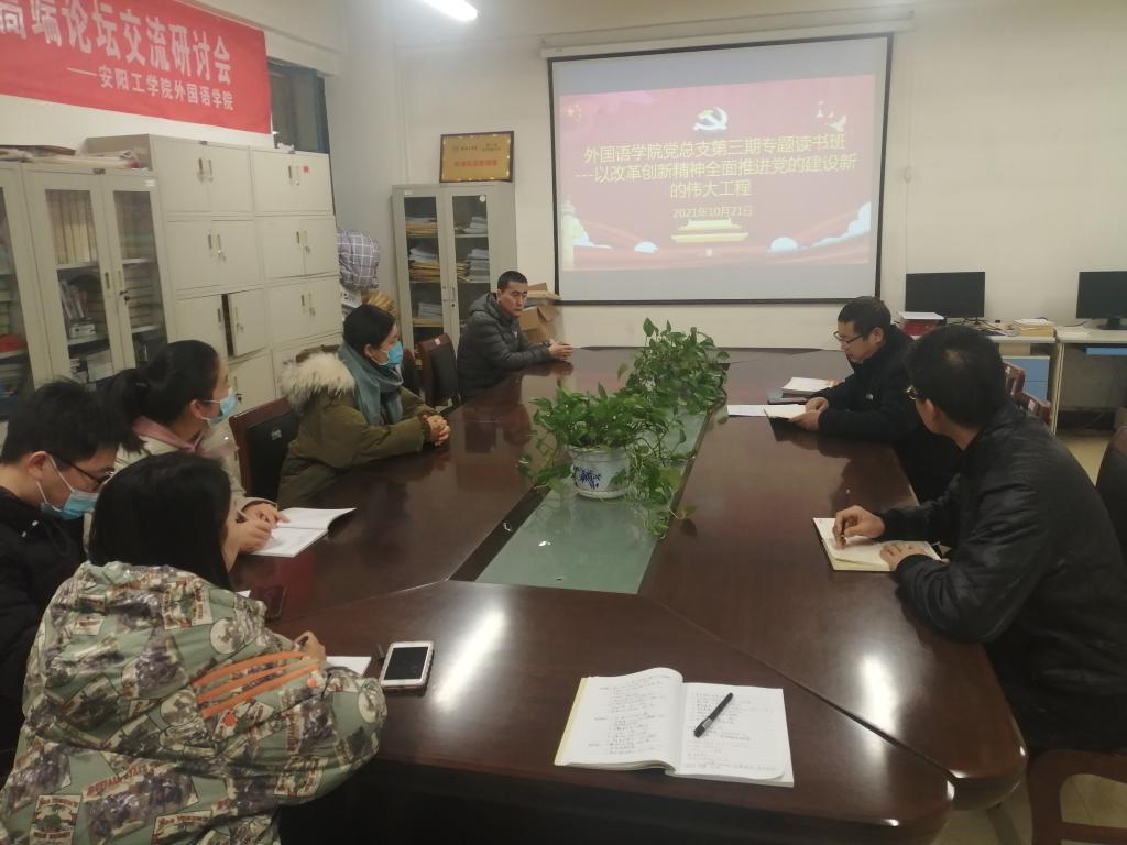10月21日,beat365在线唯一官网党总支在A10-201会议室举办党史学习教育第三期专题读书班。学院党总支中心组成员、各辅导员参加学习。