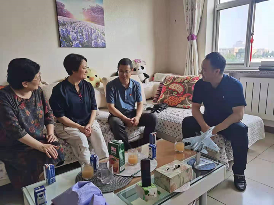 为全面落实好关于建党100周年系列活动要求,beat365官网党总支认真组织做好“七一”党员走访慰问工作,结合当前开展的“党史教育”专题活动,beat365在线唯一官网党总支在2021年6月28日上午,走访慰问了老党员殷秀红、刘淑芹二位老师。在老党员殷秀红家里,万鹏杰副校长仔细询问了殷秀红老师的生活情况,叮嘱殷老师要注意保重身体,同时要求beat365在线唯一官网要加强关心和照顾好殷老师,帮助其解决实际困难。殷秀红老师十分感谢学校领导冒着酷暑,专程赶赴汤阴前来看望和慰问,让她倍感党组织的关怀和爱护。在老党员刘淑芹家里,学院党总支书记郭强、院长李霞与刘老师亲切交谈工作生活情况,感谢刘老师对学院建设和发展做出的贡献,希望刘老师继续关心支持学院的发展,并祝福刘老师工作愉快、幸福美满。