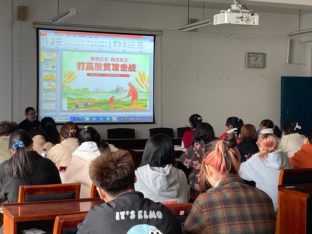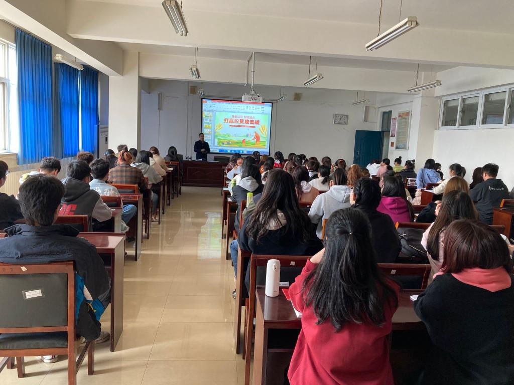 beat365在线唯一官网党总支书记郭强对beat365官网学子开展脱贫攻坚精神宣讲