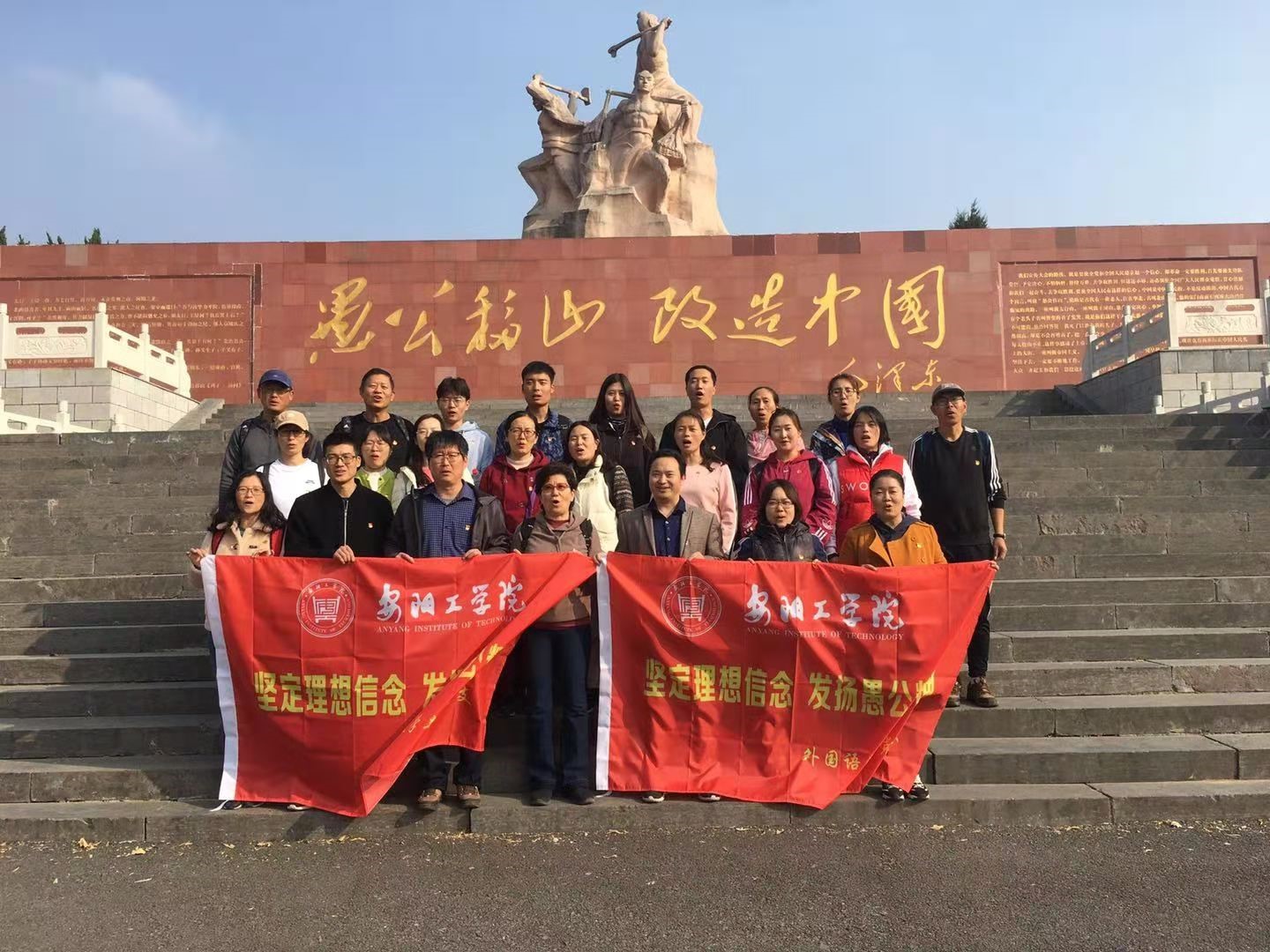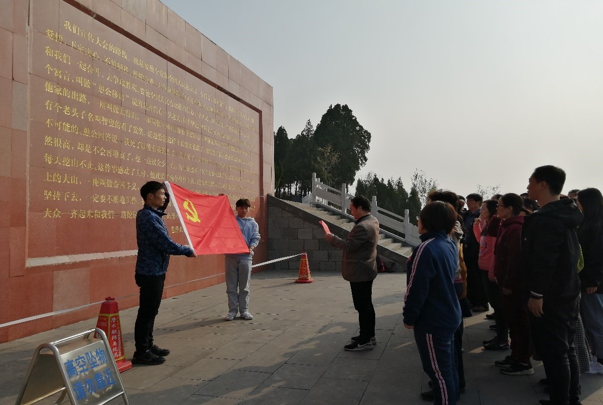 beat365在线唯一官网党总支带领党员教师及部分学生党员代表赴王屋山参观愚公移山精神展馆,重温入党誓词,朗诵毛泽东主席的名篇《愚公移山》;参观全国爱国主义教育基地——黄河小浪底工程。