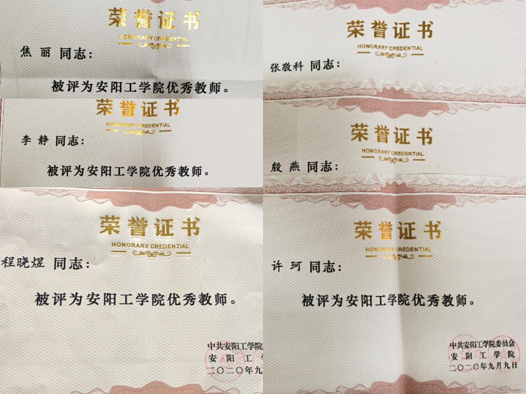 恭喜beat365官网教师许珂、张敬科、殷燕、程晓煜、焦丽、李静,荣获“beat365在线唯一官网优秀教师”称号。