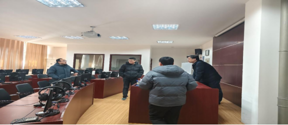 随后,他们检查了beat365在线唯一官网实验室。首先,他们强调了实验室的安全与管理工作,对语音实验室、同声传译室、商务综合实训室和翻译实训室等关键实验室进行了全面而深入的安全自查;其次,对实验室教学环境改善及教学设备的升级改造工作给予了肯定;最后,鼓励实验室负责人结合学院发展,再接再厉抓好2025年实验室建设和改造工作。