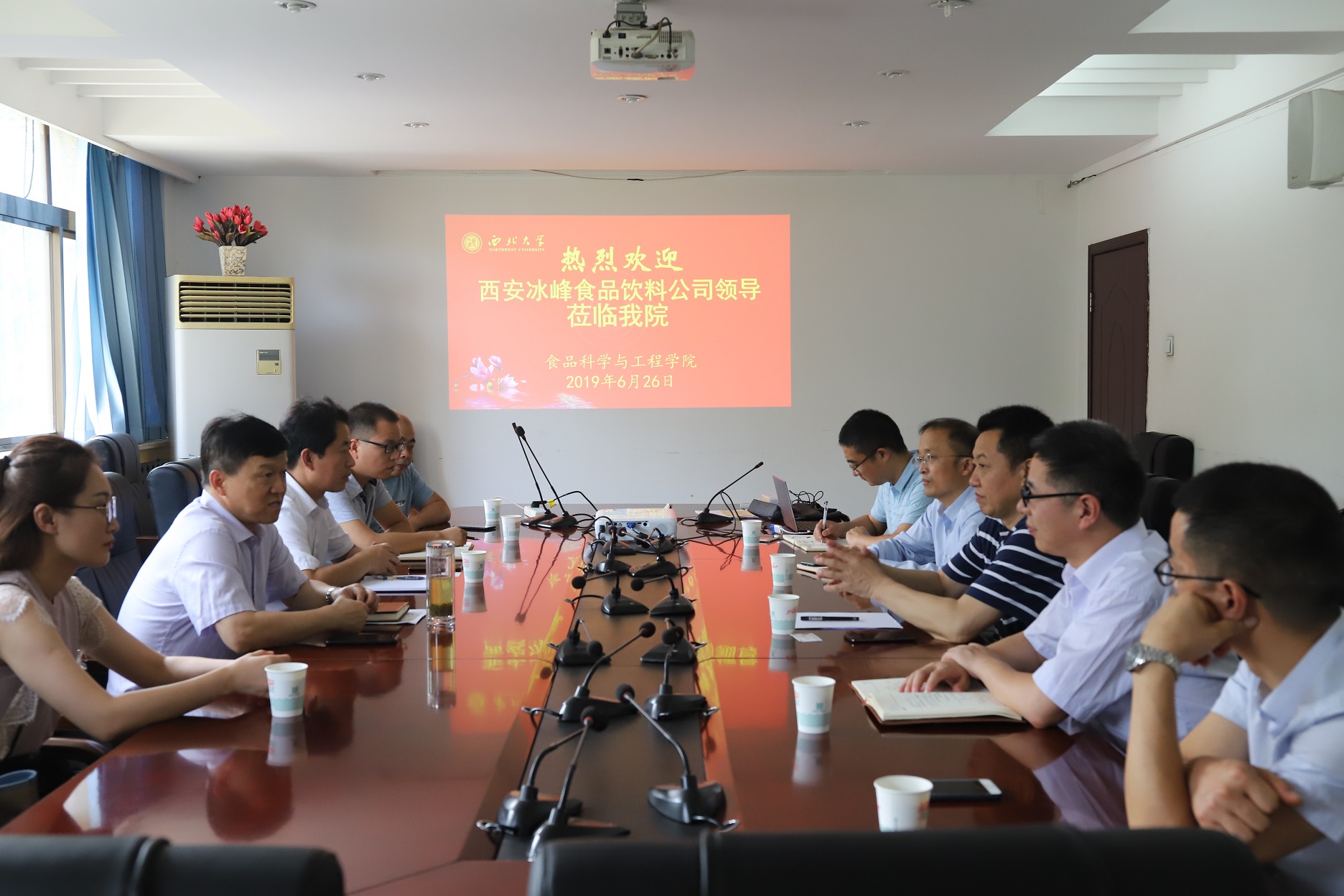 岳田利院长代表学院对陈卫平总经理一行的莅临表示欢迎,并向其介绍了学院发展的历史,以及现有的学科方向及学科平台。同时指出,冰峰饮料作为西安人记忆里“儿时的味道”,可与365英国官网现有的科研力量在产品开发、功能升级等方面开展广泛合作;冰峰方面也可在365英国官网设立奖学金,提供实习场所,利用百年西大声誉,增加知名度,进一步拓宽市场。