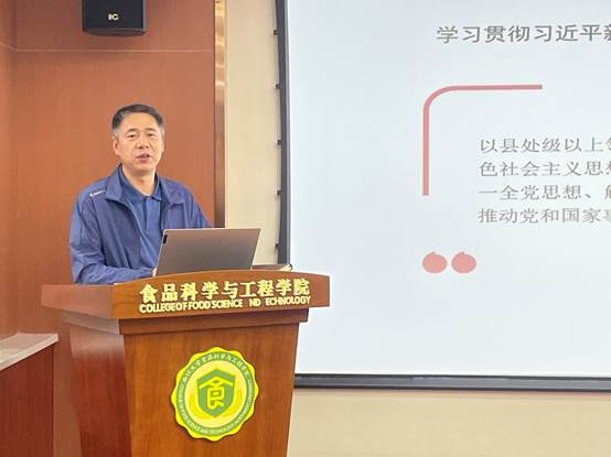刘晓忠从深刻理解开展主题教育的重要意义讲起,交流了对主题教育总要求和根本任务的理解,强调学院党委要把“学思想、强党性、重实践、建新功”总要求贯穿主题教育全过程,坚持“学思用贯通、知信行统一”,把习近平新时代中国特色社会主义思想转化为坚定理想、锤炼党性和指导实践、推动工作的强大力量。围绕学习习近平新时代中国特色社会主义思想,谈了对新思想的世界观、方法论和贯穿其中的立场观点方法的理解;阐释了要贯通理论学习、调查研究、推动发展和检视整改等方面,推动主题教育走深走实;要大兴调查研究之风,落实好工作责任制,确保主题教育各项任务圆满完成。结合学院工作实际,他提出学院党员、干部要感悟思想伟力,增进对党的创新理论的政治认同、思想认同、理论认同、情感认同;坚持立德树人,着力培养德智体美劳全面发展的具有家国情怀、社会责任、创新精神和国际视野的新时代食品领域优秀人才;锚定发展目标,以时不我待的紧迫感改革创新,在推动学科高质量发展中建新功。