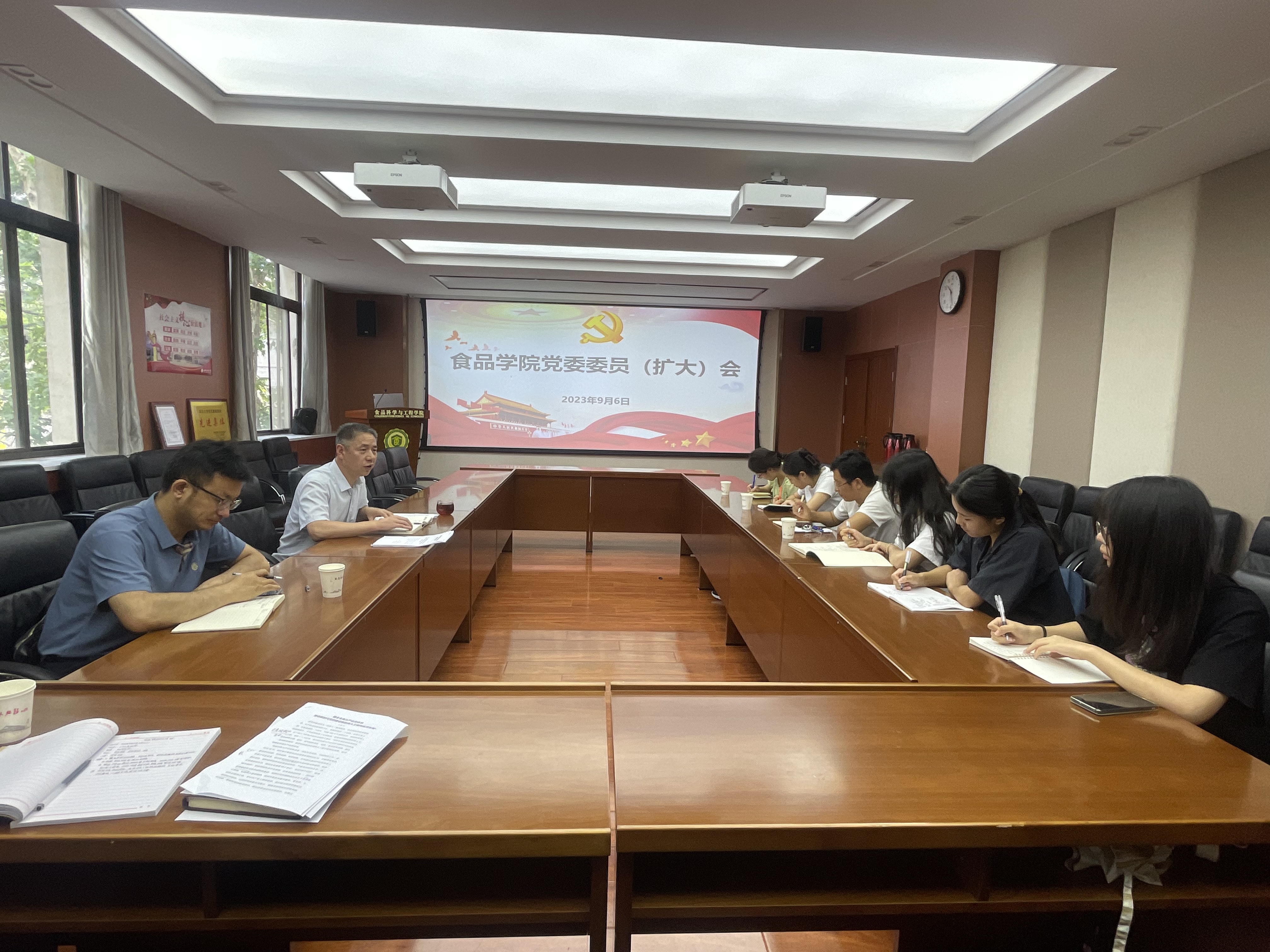 9月6日上午,食品学院召开党委委员(扩大)会,集体学习习近平总书记关于党的建设的重要文章,传达学校关于主题教育专项整治和师德师风宣传月活动有关工作安排。学院党委委员、党支部书记和委员参加会议,会议由学院党委书记刘晓忠主持。
