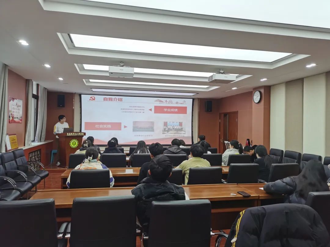 答辩分为个人陈述和评委提问两个环节。在个人陈述环节中,各位入党积极分子全面客观地从个人情况介绍、入党动机、政治理论学习、课程成绩、社会工作、志愿服务、未来规划等方面逐一汇报,向评委们全面展示自身综合素质。每位答辩人在汇报中阐述了自己的入党动机,汇报政治理论学习尤其是习近平新时代中国特色社会主义思想的学习和心得,并且表明加入中国共产党的决心。在展示自身优势的同时也直面不足以及今后的改进措施,并表示日后将继续提升自身综合素质,发挥模范带头作用。由学工干部和各学生党支部书记组成的现场评委认真聆听、仔细记录,对个人陈述内容进行提问,现场考核对党的理论知识掌握情况,考察答辩人对党的思想理论、党的基本理论、基本路线、基本方略的理解和掌握情况。