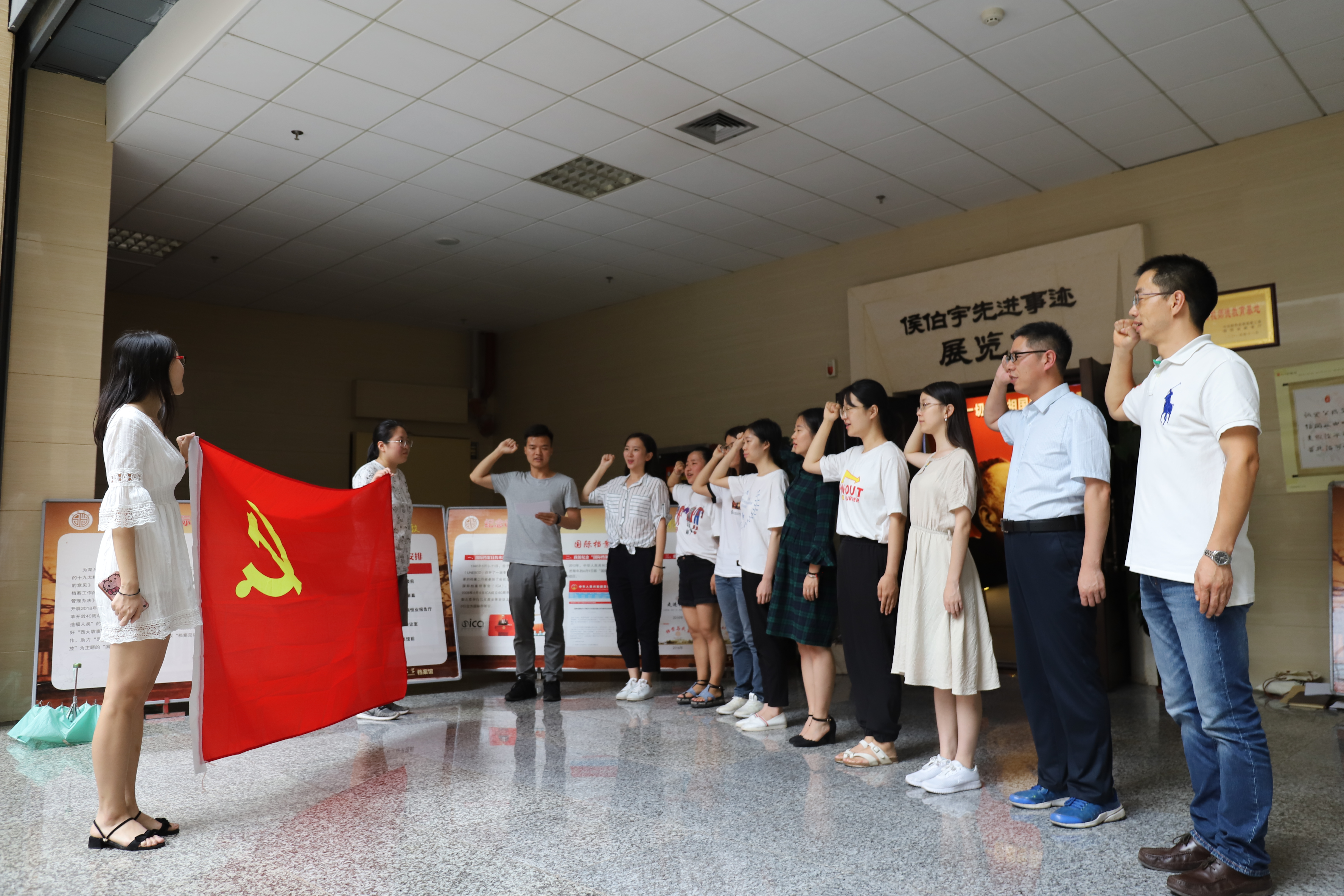 座谈会后,全体与会人员参观了侯伯宇先进事迹展览馆,被侯伯宇教授将对党、对祖国的忠诚、对科学事业的积极探索、执着追求、勇攀高峰、潜心育人、甘为人梯的师德风范深深感染,对“公诚勤朴”的校训的内涵和“艰苦创业、自强不息”的西大精神有了更深的理解。在侯伯宇先进事迹展览馆门口,全体党员举起右拳,重温了入党誓词,集体度过了在校期间的最后一次党员组织生活会。