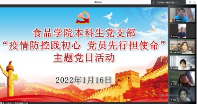 1月16日上午,食品学院本科生党支部举行“疫情防控践初心,党员先行担使命”线上主题党日活动。校党委副书记赵作纽,学院党委书记刘晓忠、副书记张霄和全体辅导员,学院2021研究生党支部、2019和2020级研究生党支部书记、委员,本科生党支部全体党员参加会议。会议由本科生党支部书记王贤主持。