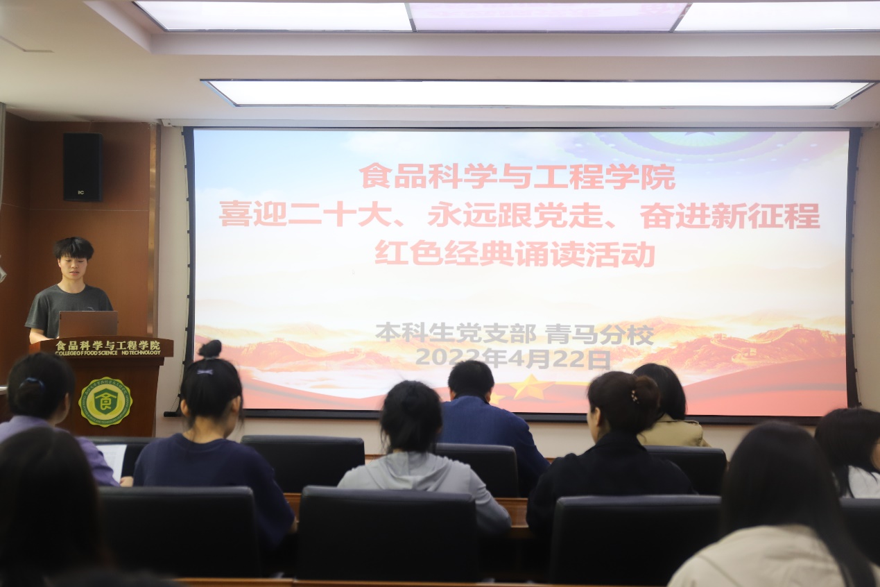 学生党员、入党积极分子、青马培训班学员分组诵读了《共产党宣言》《青春之歌》《党的赞歌》中的精彩片段,让大家形象地感受到马克思主义理论原著和红色经典文献的永恒魅力,用诵读的形式把广大青年学生吸引过来,以诵读促学习,进一步增强马克思主义理论学习的吸引力和感染力,使马克思主义理论在青年学生中真正实现入耳入脑入心。诵读结束后,学院为获奖同学送上了《习近平与大学生朋友们》《习近平讲党史故事》《共产党宣言》《苦难辉煌》等著作,鼓励同学们进一步阅读经典。