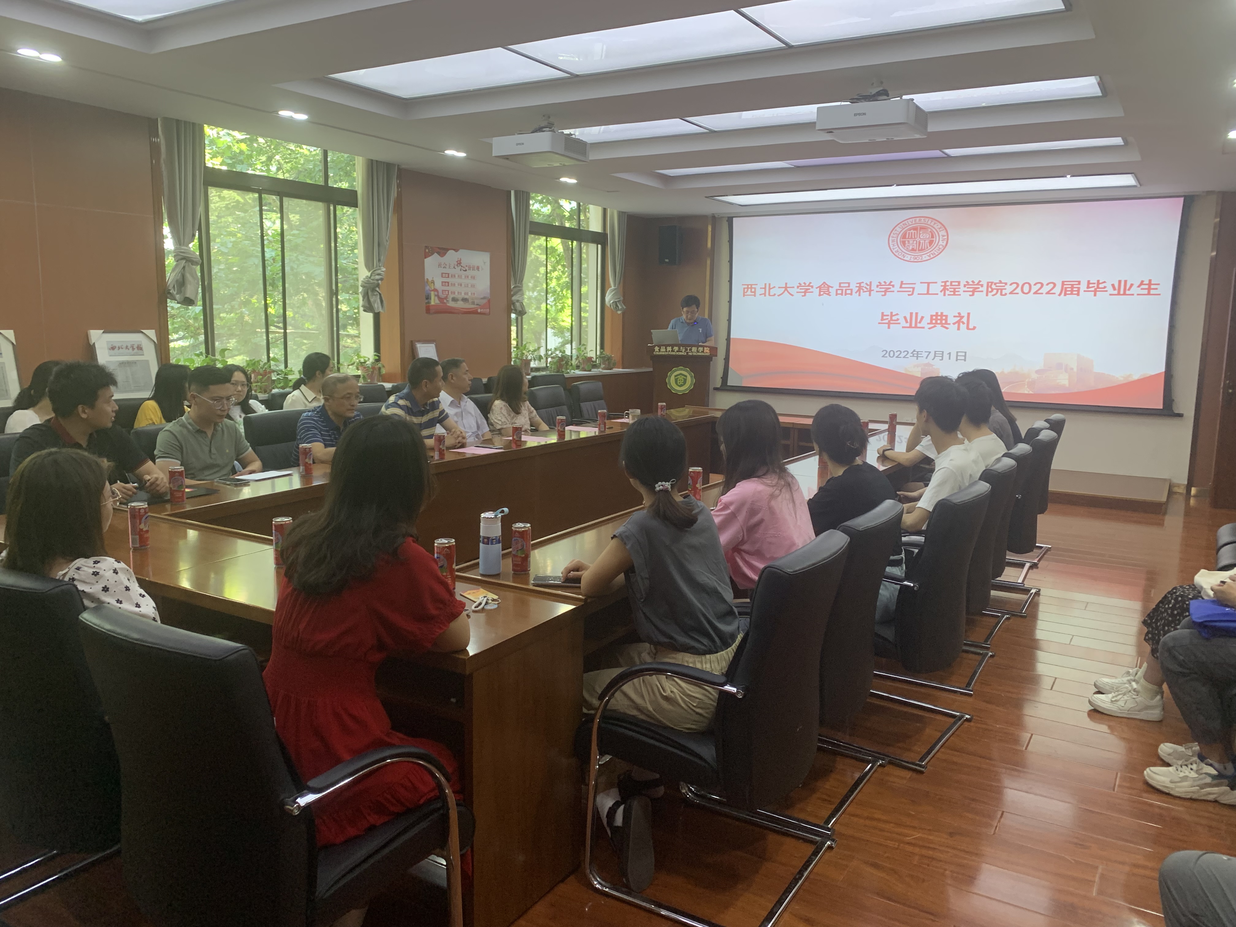 仲夏清风唱骊歌,桃李芬芳话未来。7月1日上午,食品学院2022届毕业生毕业典礼在学院会议室举行。学院党委书记刘晓忠、副院长曹炜、副院长王仲孚、副院长马燕,白武双副教授、冯克伟副教授和2022届毕业生出席毕业典礼。毕业典礼由学院党委副书记张霄主持。