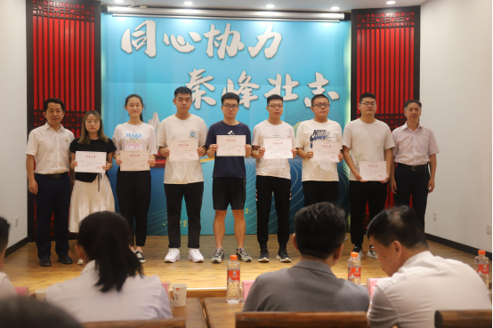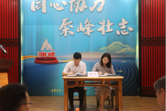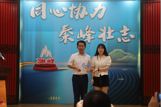 学校学生就业创业指导服务中心有关负责人与冰峰公司总经理共同签订合作协议书。赵作纽,食品学院负责人,冰峰公司相关领导共同为“大学生劳动教育基地”“大学生就业创业工作站”揭牌。与会领导为冰峰奖助学金和冰峰疫情防控奖学金获奖学生代表颁奖。获奖学生代表向企业赠送纪念奖杯。